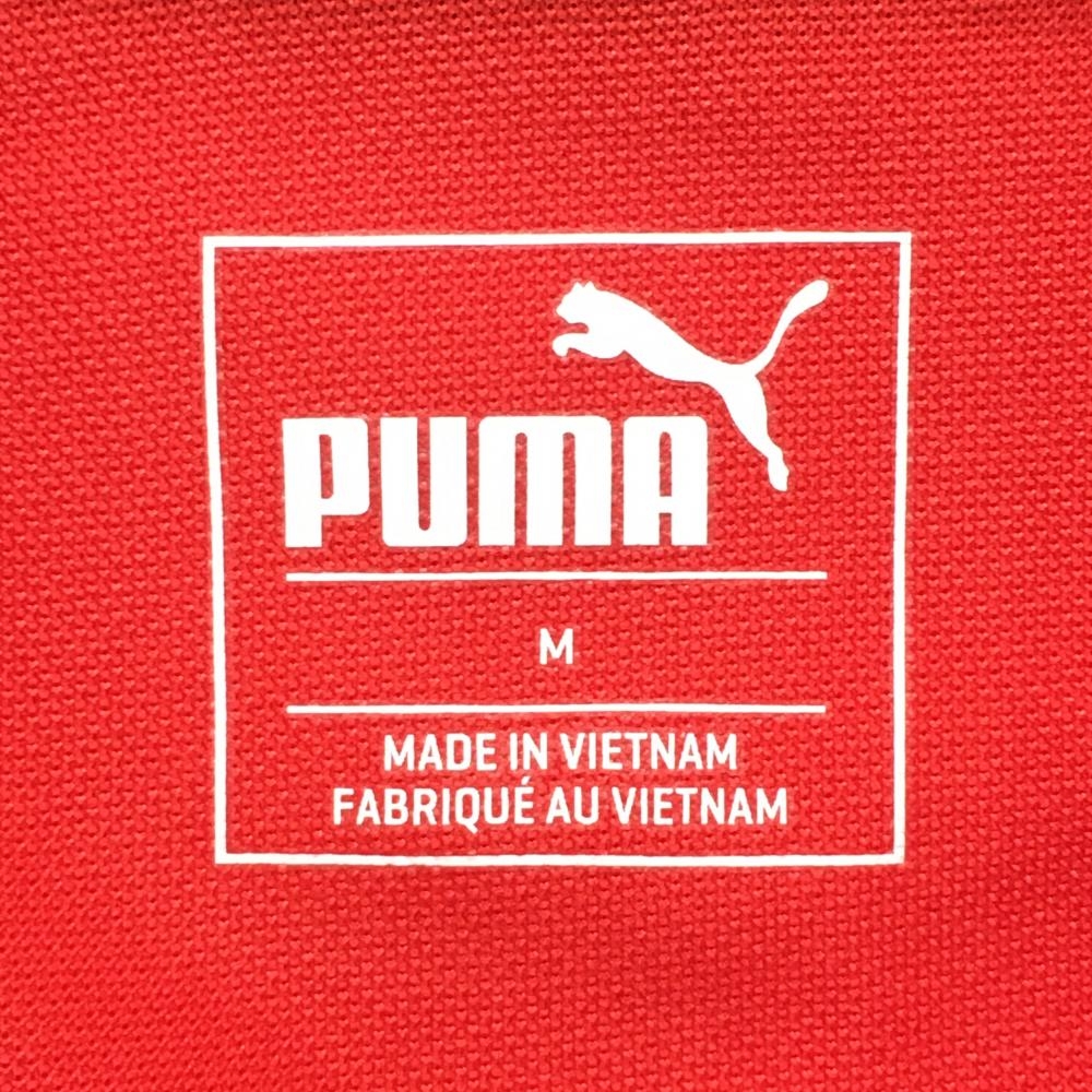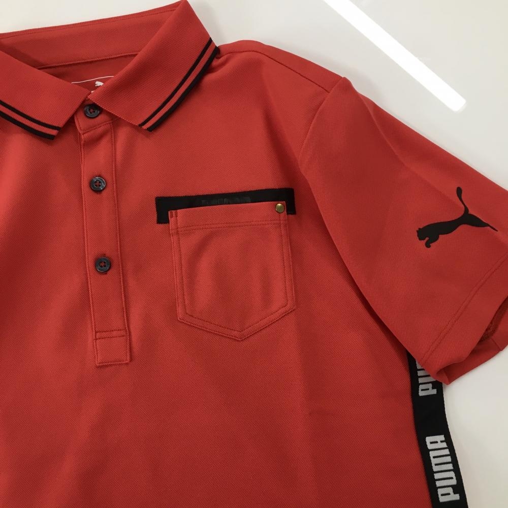 【超美品】プーマ 半袖ポロシャツ レッド×黒 サイドロゴライン 胸ポケット DRYCELL メンズ M ゴルフウェア PUMA