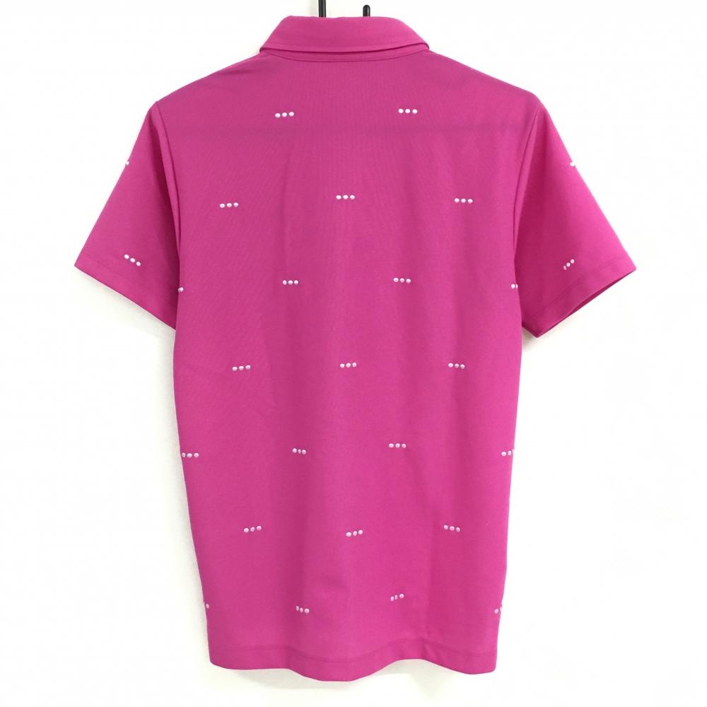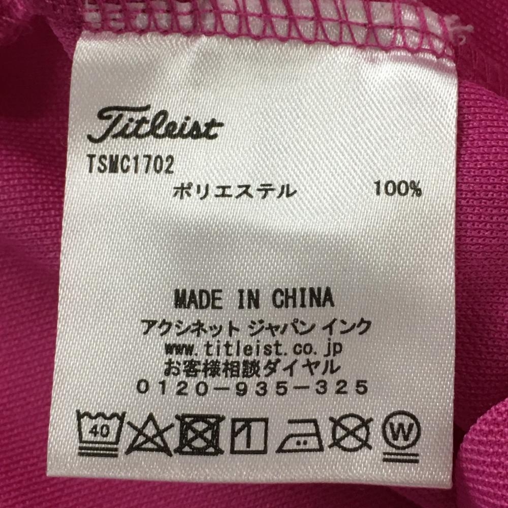 【美品】タイトリスト 半袖ポロシャツ ピンク×白 刺しゅう柄 ボタンダウン メンズ M ゴルフウェア TITLEIST