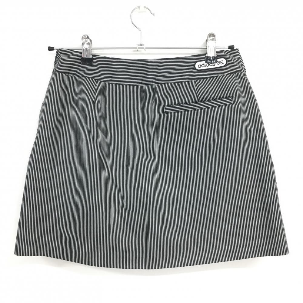 【超美品】アディダス スカート 黒×白 ストライプ 内側インナーパンツ 前面裾プリーツ レディース M/M ゴルフウェア adidas