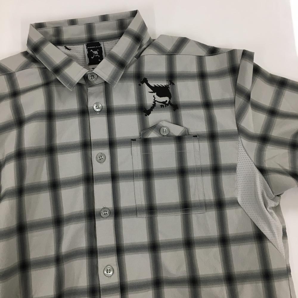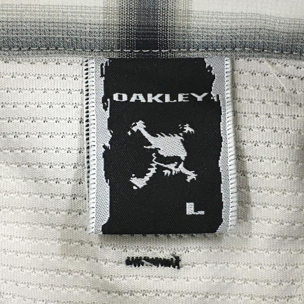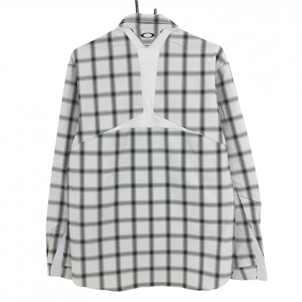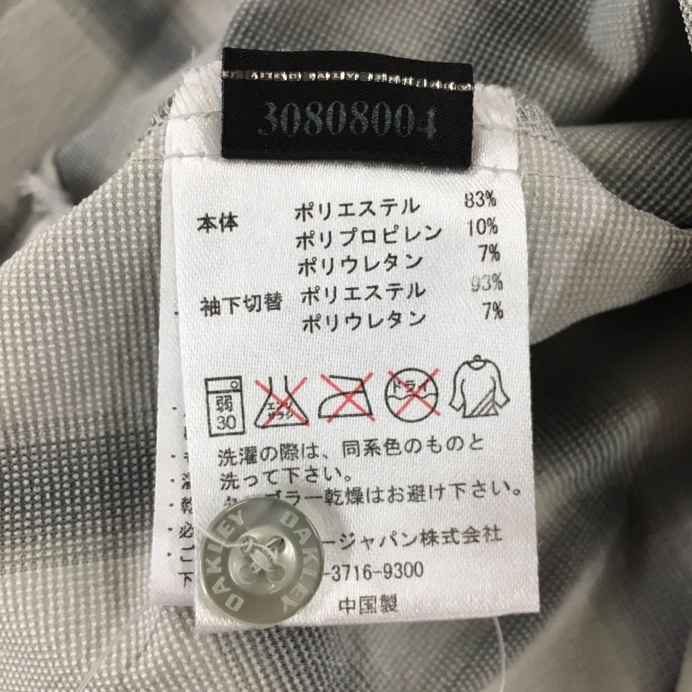 【美品】オークリー 長袖シャツ ライトグレー×黒 チェック 一部メッシュ ストレッチ メンズ L ゴルフウェア Oakley
