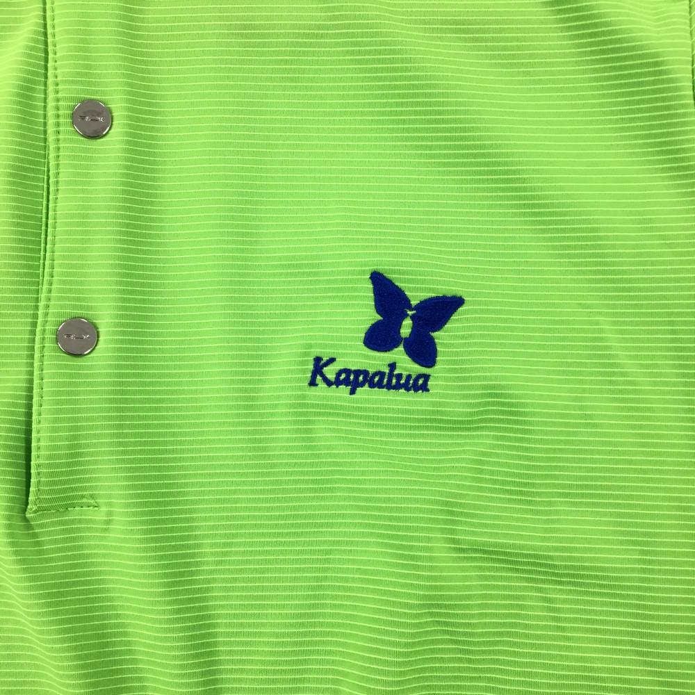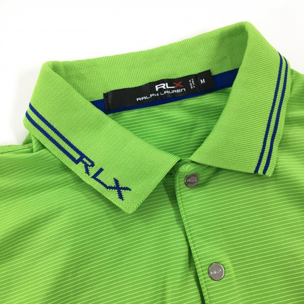【美品】RLXラルフローレン 半袖ポロシャツ ライトグリーン 細目ボーダー織生地 Kapalua レディース M ゴルフウェア Ralph Lauren