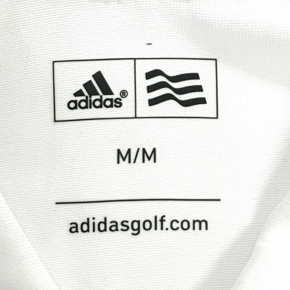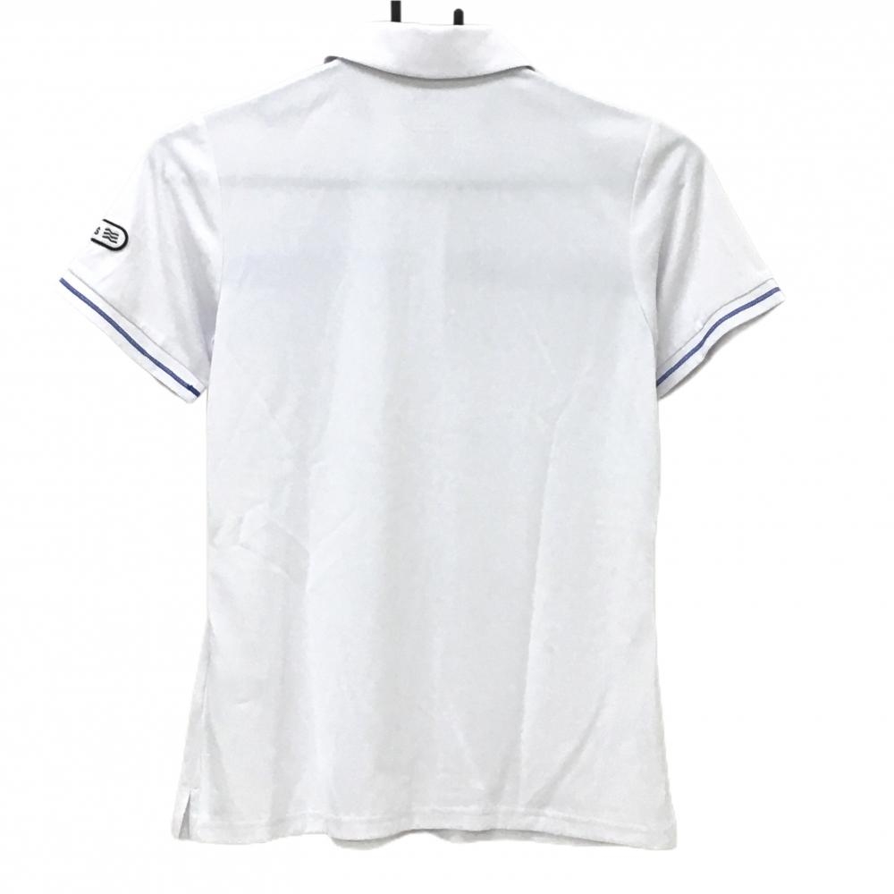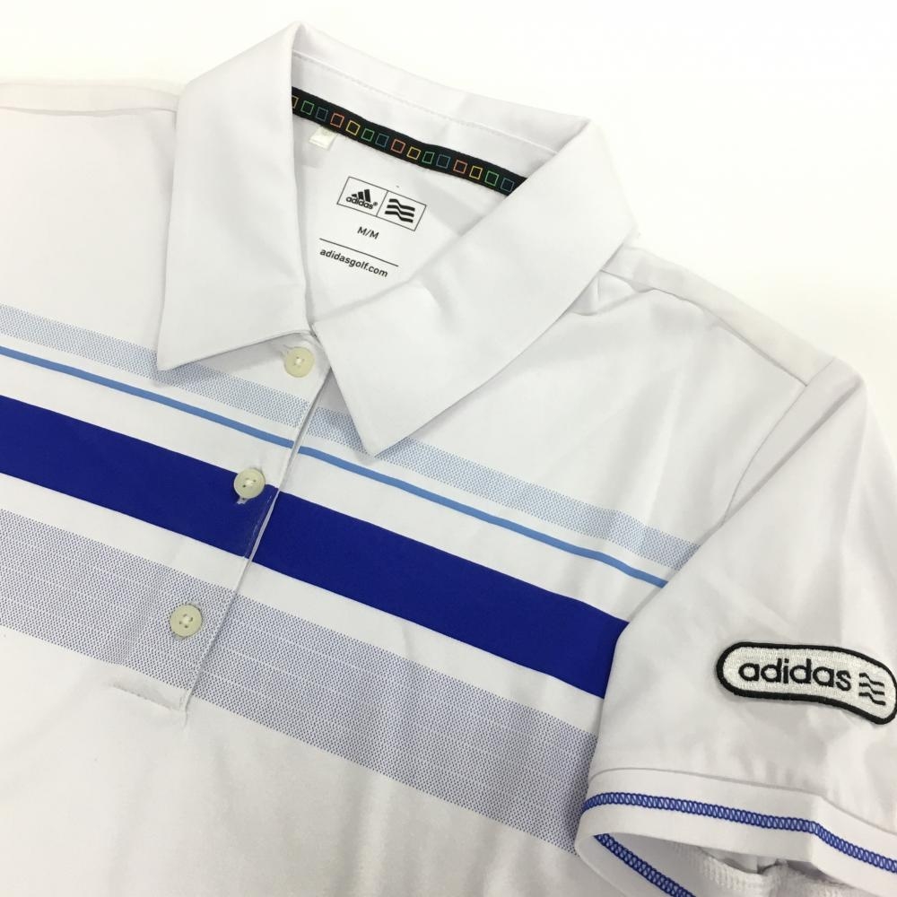 【美品】アディダス 半袖ポロシャツ 白×ブルー 胸ライン ストレッチ レディース M/M ゴルフウェア adidas