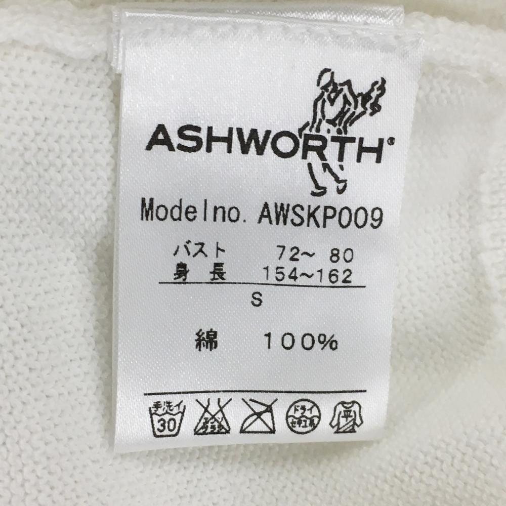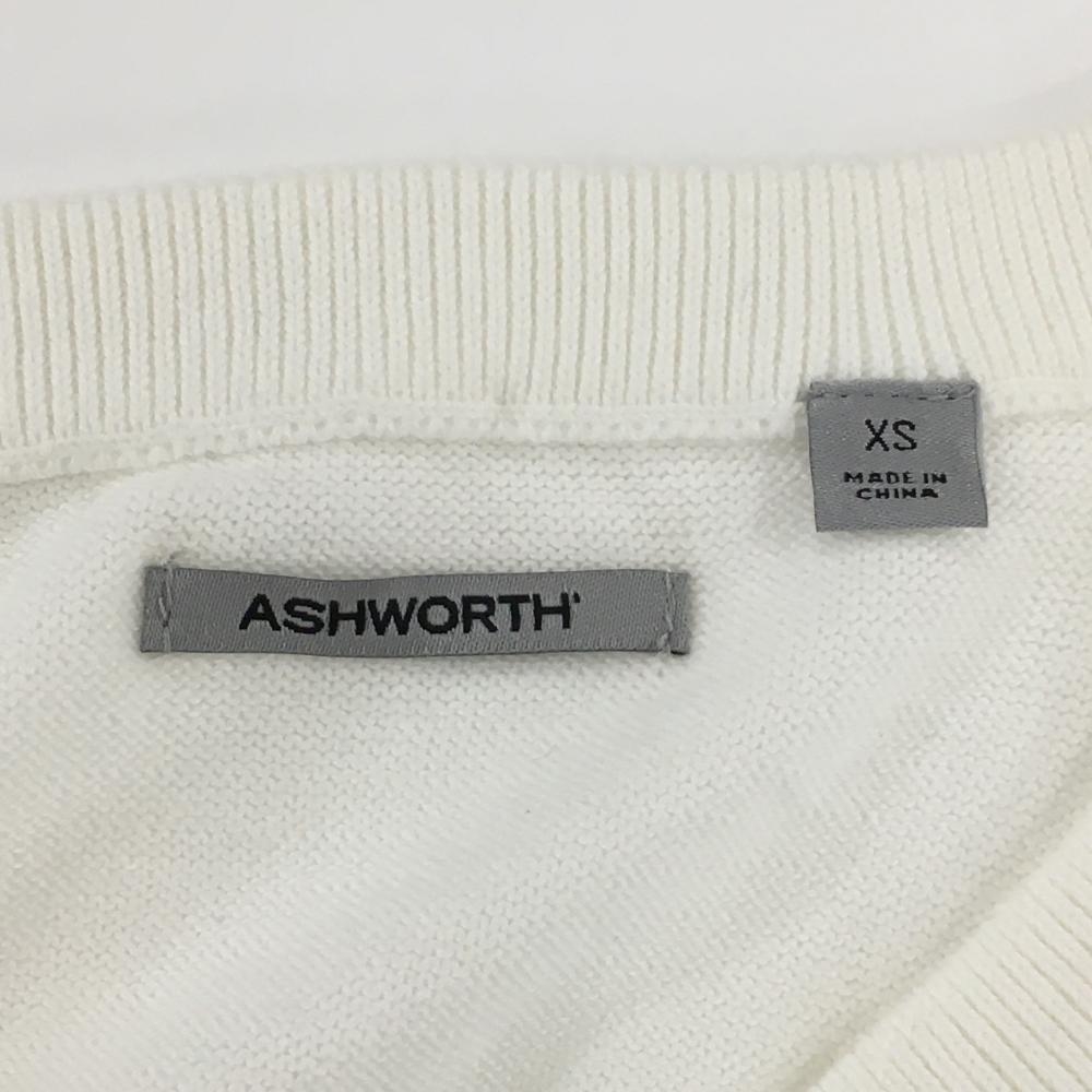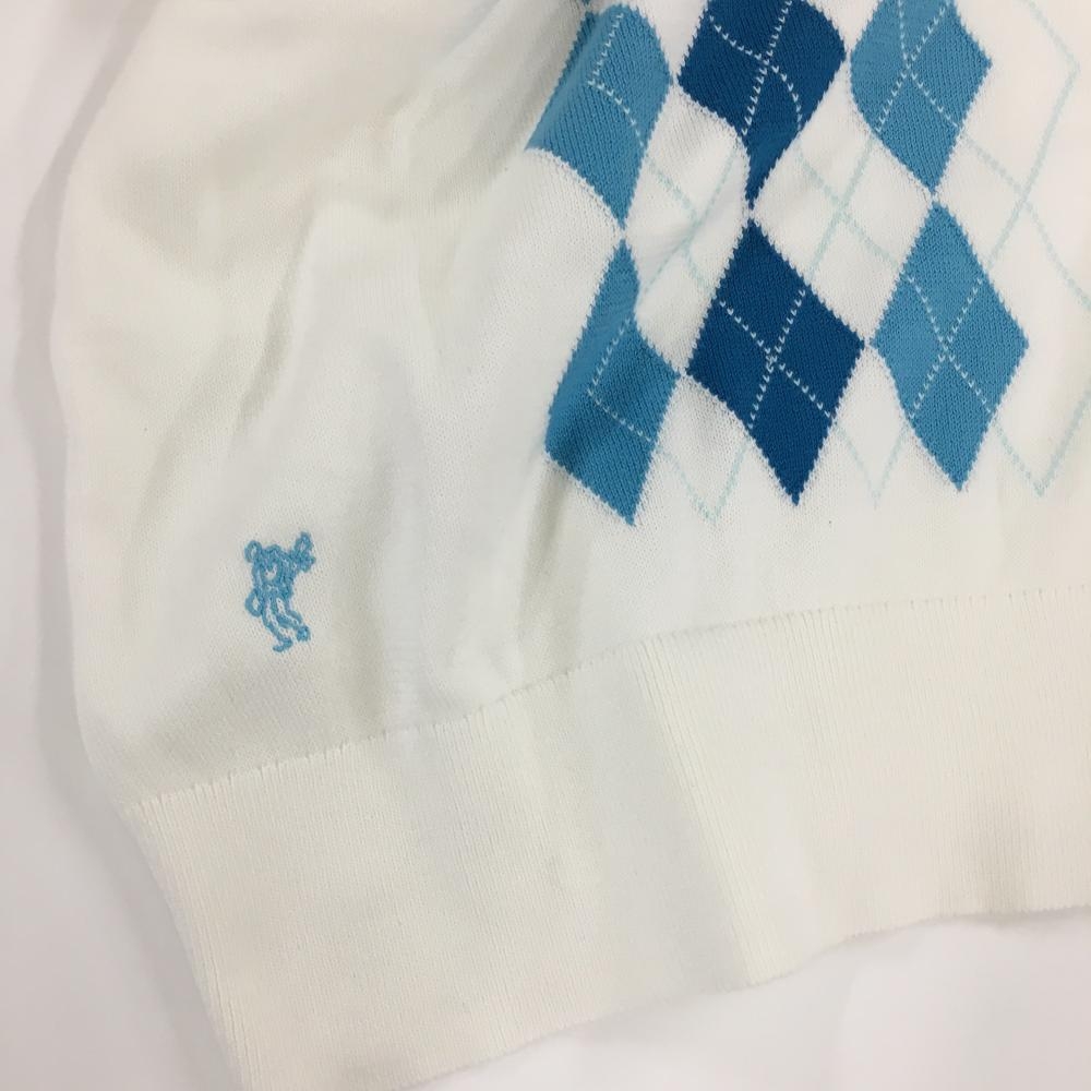 【超美品】アシュワース ニットベスト 白×ブルー 前面アーガイル コットン100% レディース S ゴルフウェア ASHWORTH
