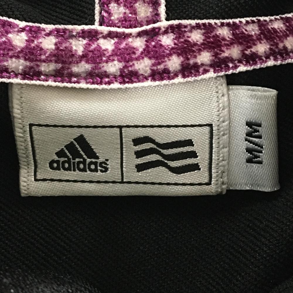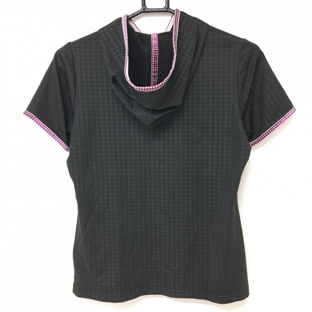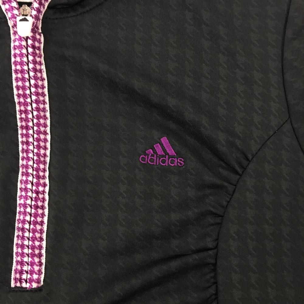 【超美品】アディダス フード付Tシャツ 黒×パープル 千鳥格子地模様 ハーフジップ レディース M/M ゴルフウェア サンプル品 adidas