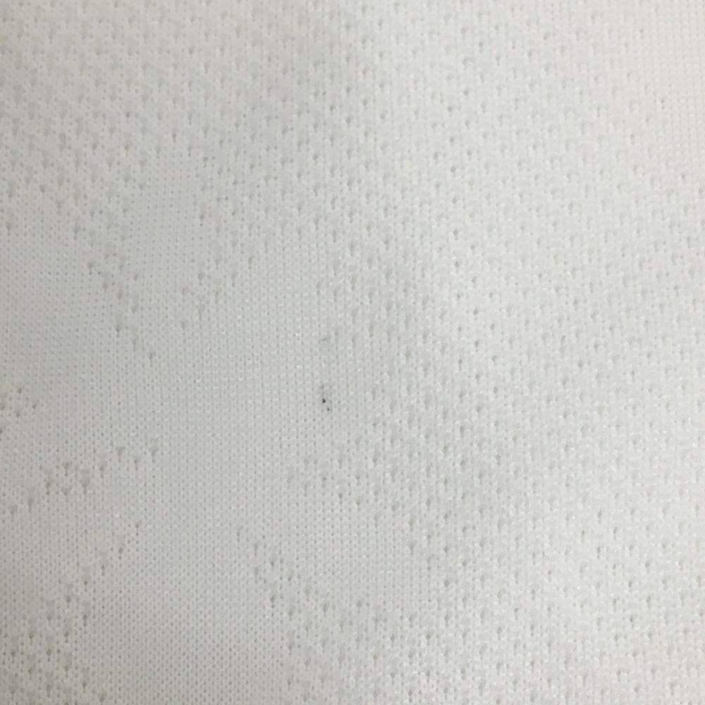 【美品】アディダス 半袖ハイネックシャツ 白×ブルー メッシュ調花柄 パイピング レディース M/M ゴルフウェア adidas