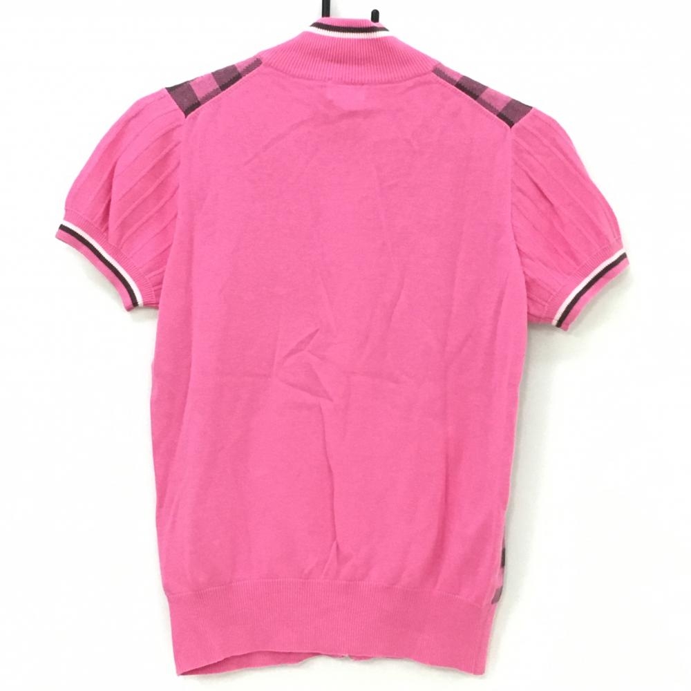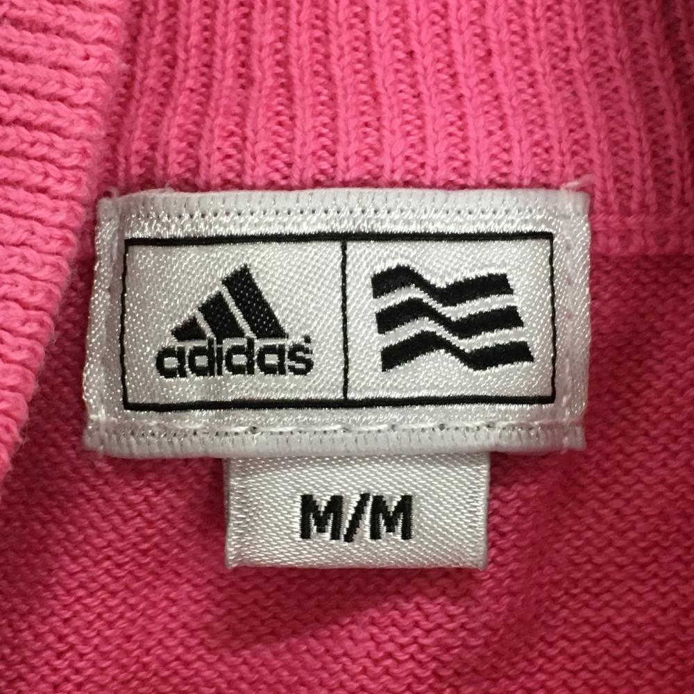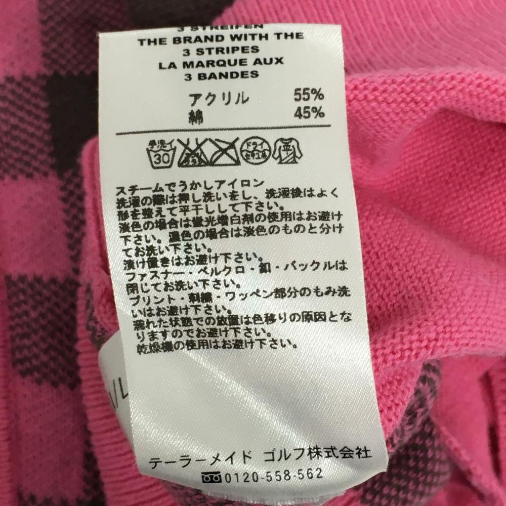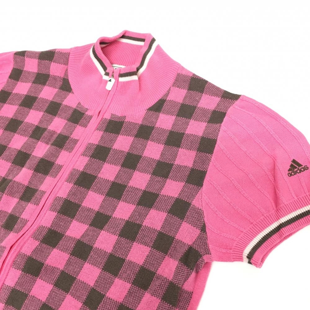 【美品】アディダス 半袖ニットジャケット ピンク×カーキ 前面ギンガムチェック コットン混 レディース M ゴルフウェア adidas