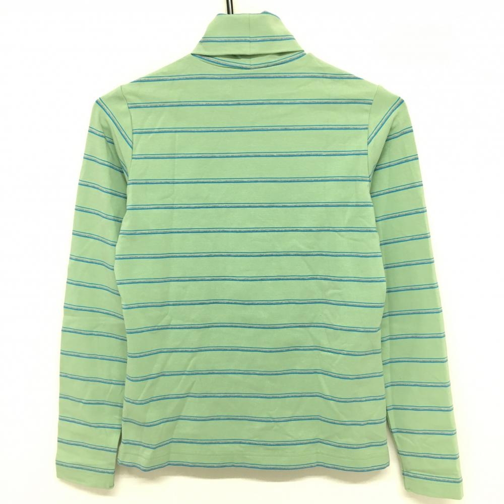 【超美品】アディダス 長袖タートルネックシャツ ライトグリーン×ブルー ボーダー ストレッチ レディース M/M ゴルフウェア adidas