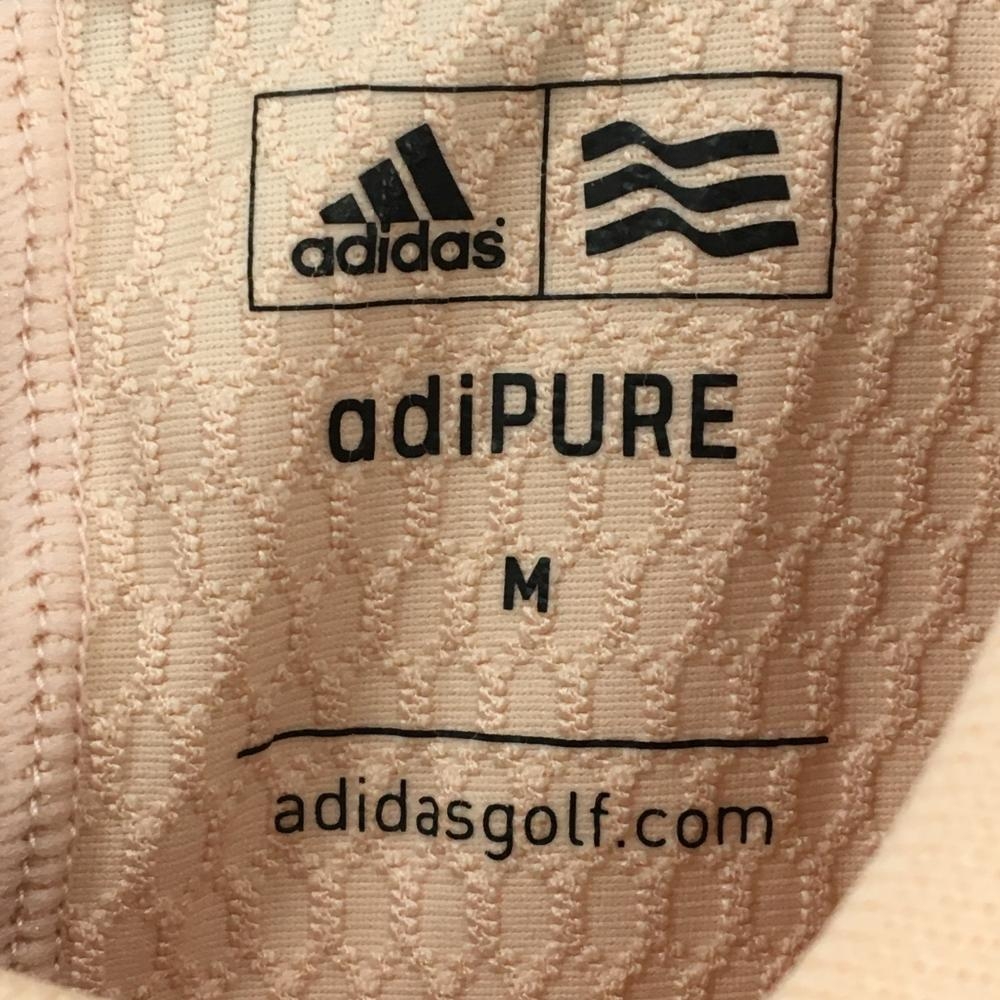 【美品】アディダス 半袖ポロシャツ ライトオレンジ ハニカム柄地模様 adiPURE レディース M ゴルフウェア サンプル品 adidas