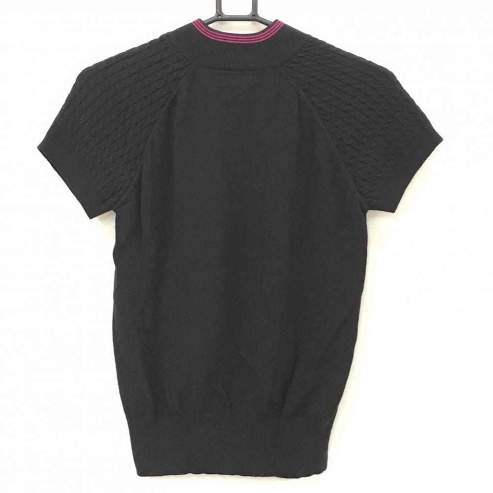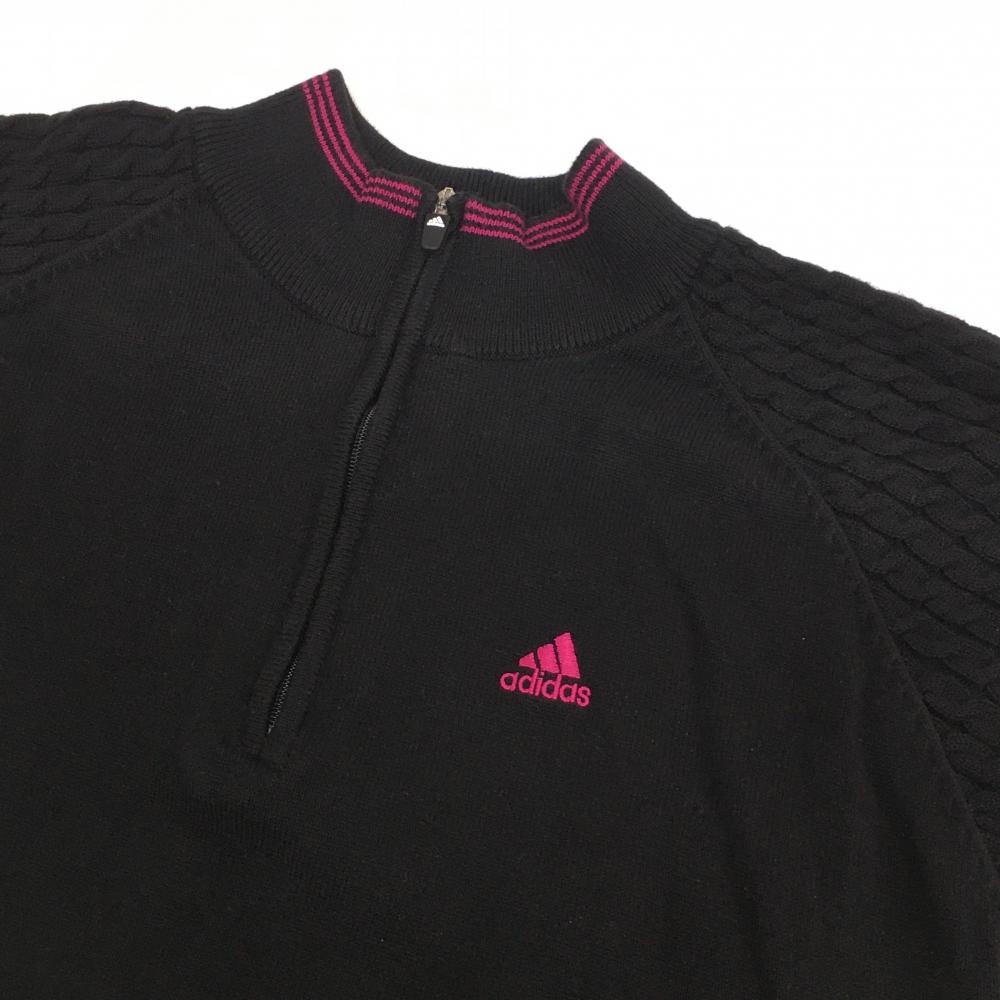 【超美品】アディダス 半袖ハイネックセーター ネイビー×ピンク 袖ケーブル編み ハーフジップ レディース M/M ゴルフウェア adidas