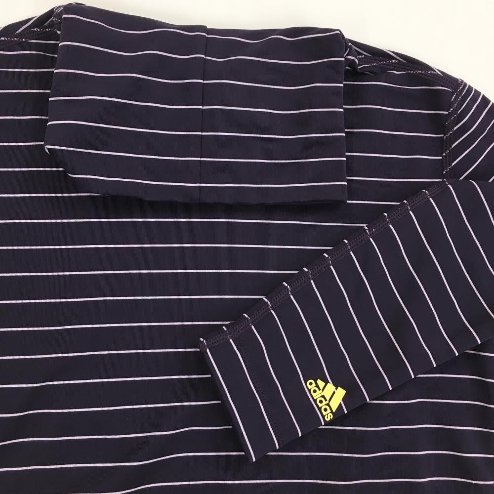 【美品】アディダス 長袖タートルネックシャツ パープル ボーダー ストレッチ インナー レディース M/M ゴルフウェア adidas