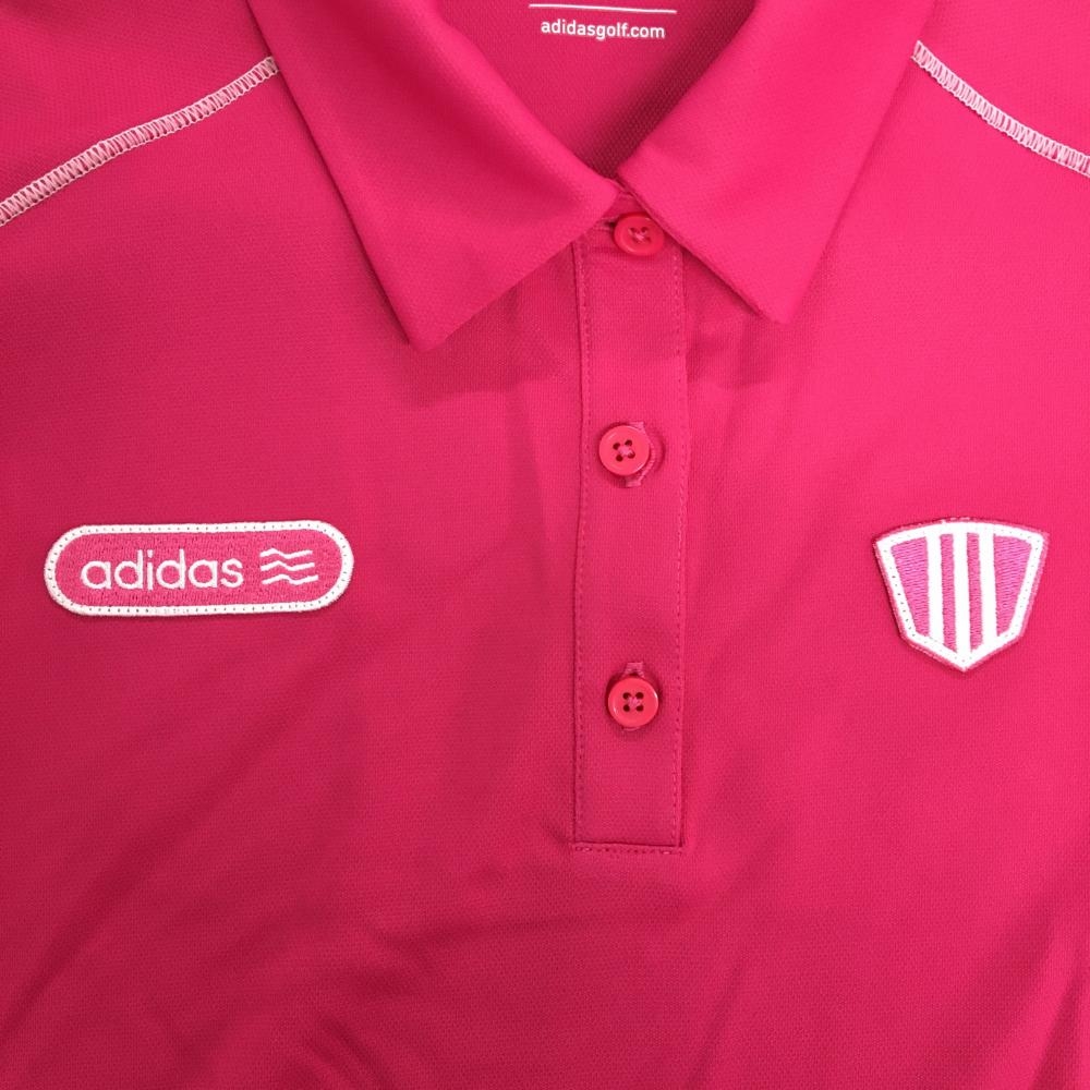 【超美品】アディダス 半袖ポロシャツ ピンク ワッペン 袖口3ライン レディース M/M ゴルフウェア adidas