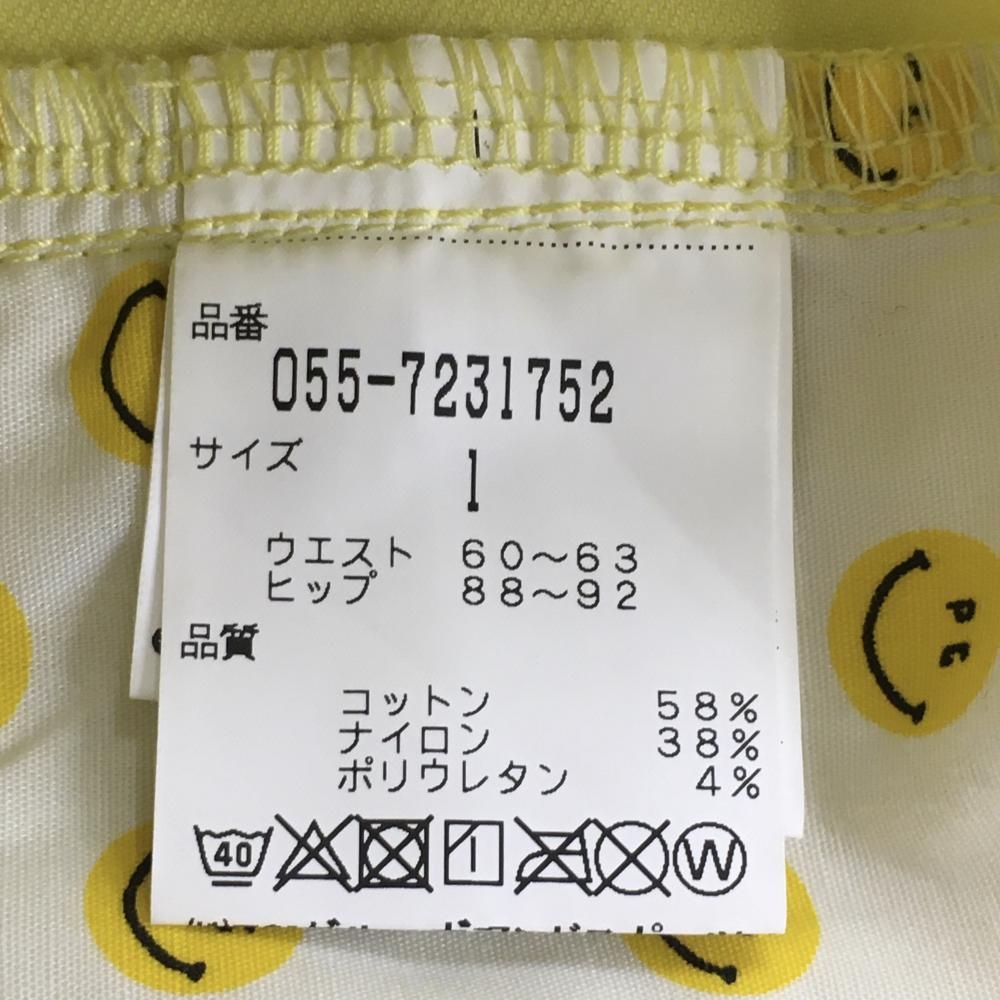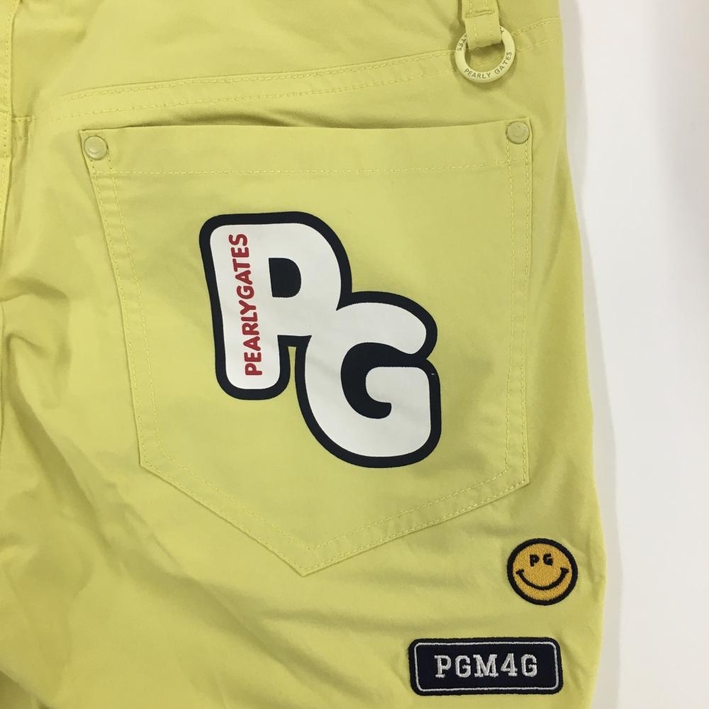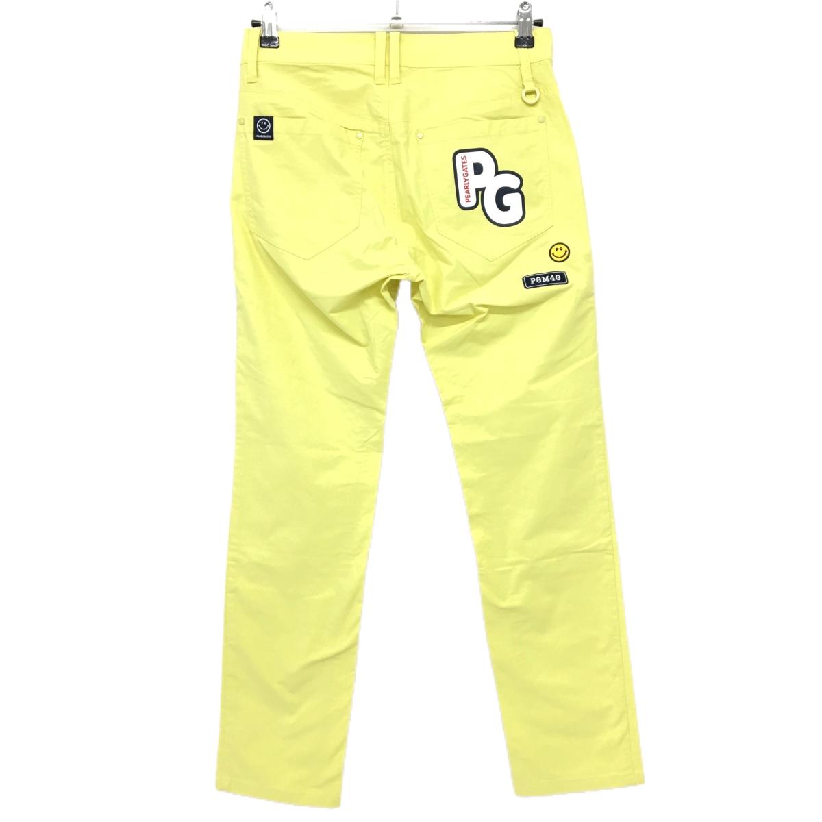 【美品】パーリーゲイツ パンツ ライトイエロー×ネイビー ニコちゃん スマイル ストレッチ レディース 1(M) ゴルフウェア PEARLY GATES