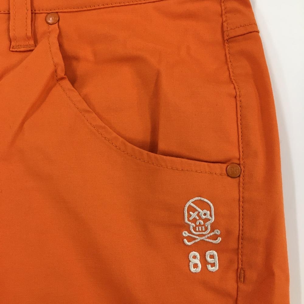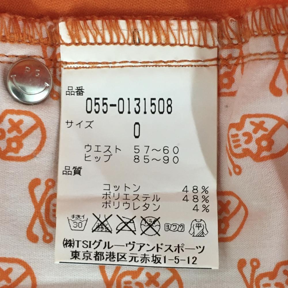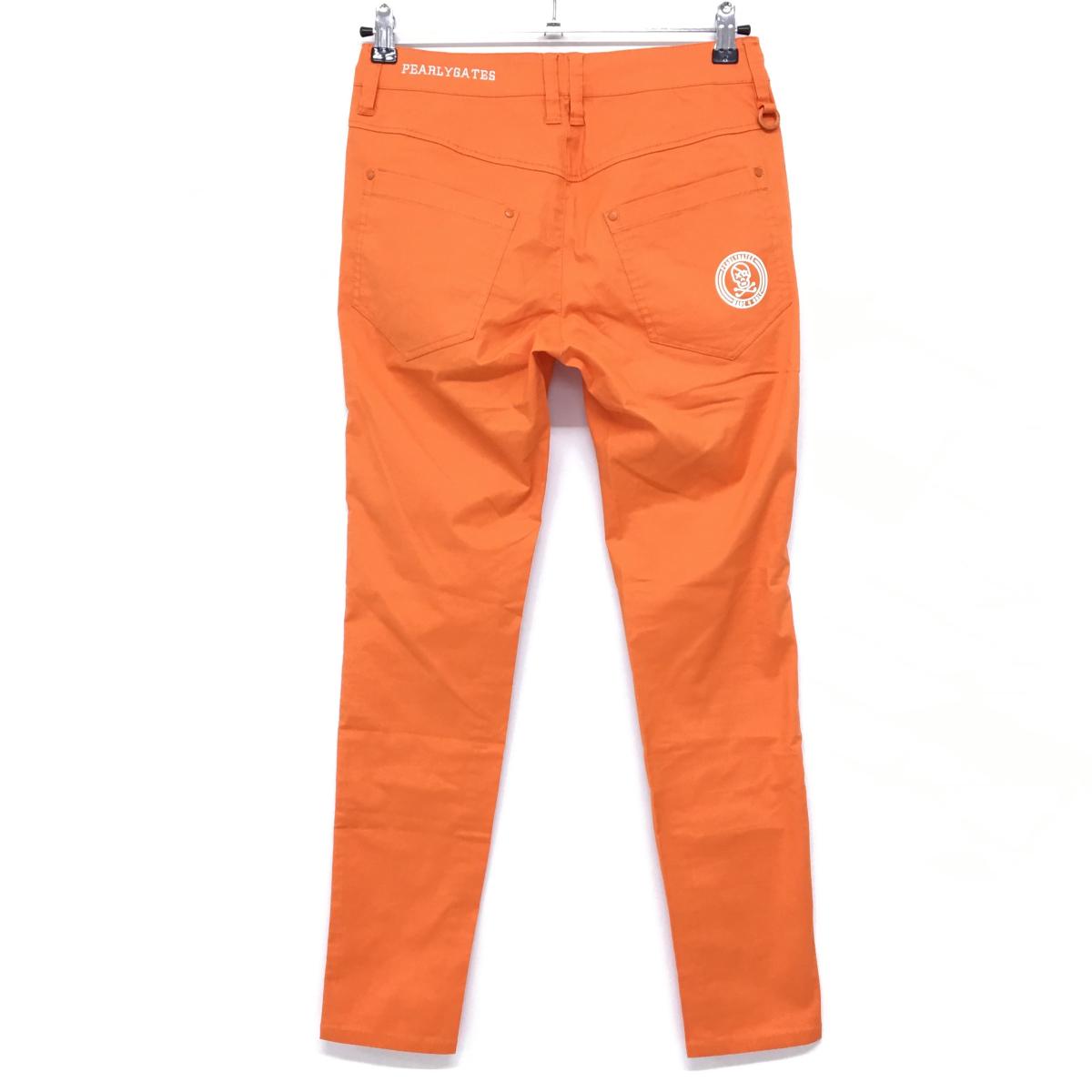 【美品】パーリーゲイツ パンツ オレンジ×白 スカル刺しゅう ストレッチ レディース 0(S) ゴルフウェア PEARLY GATES