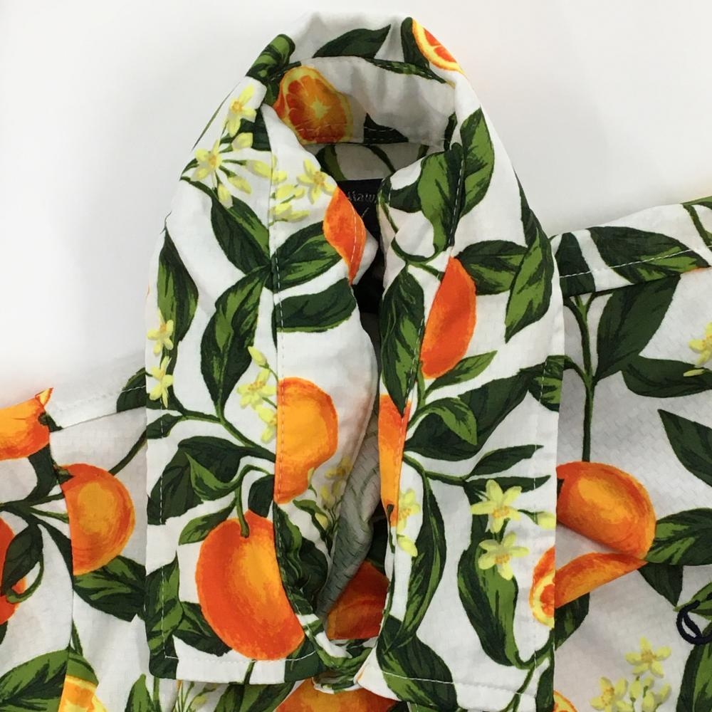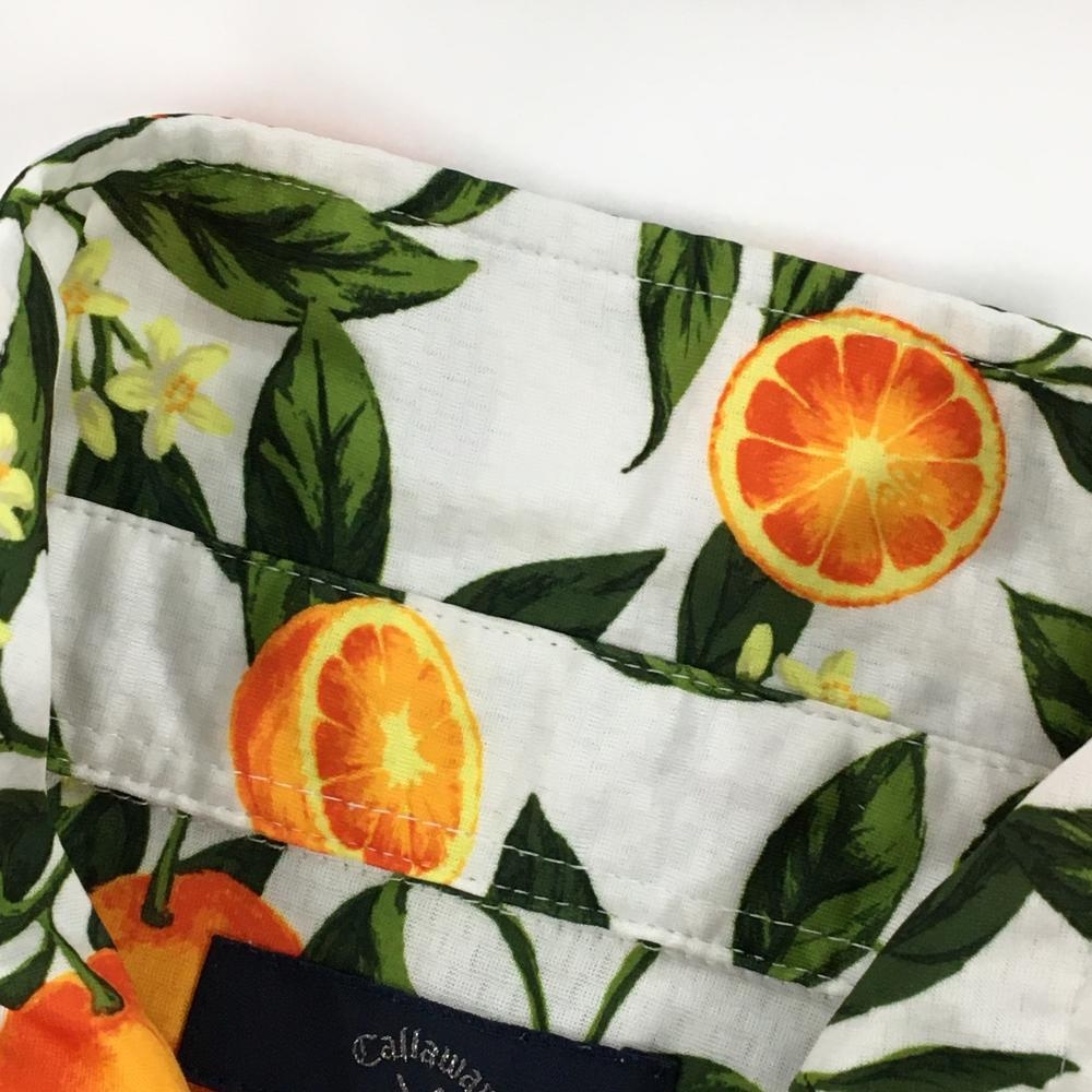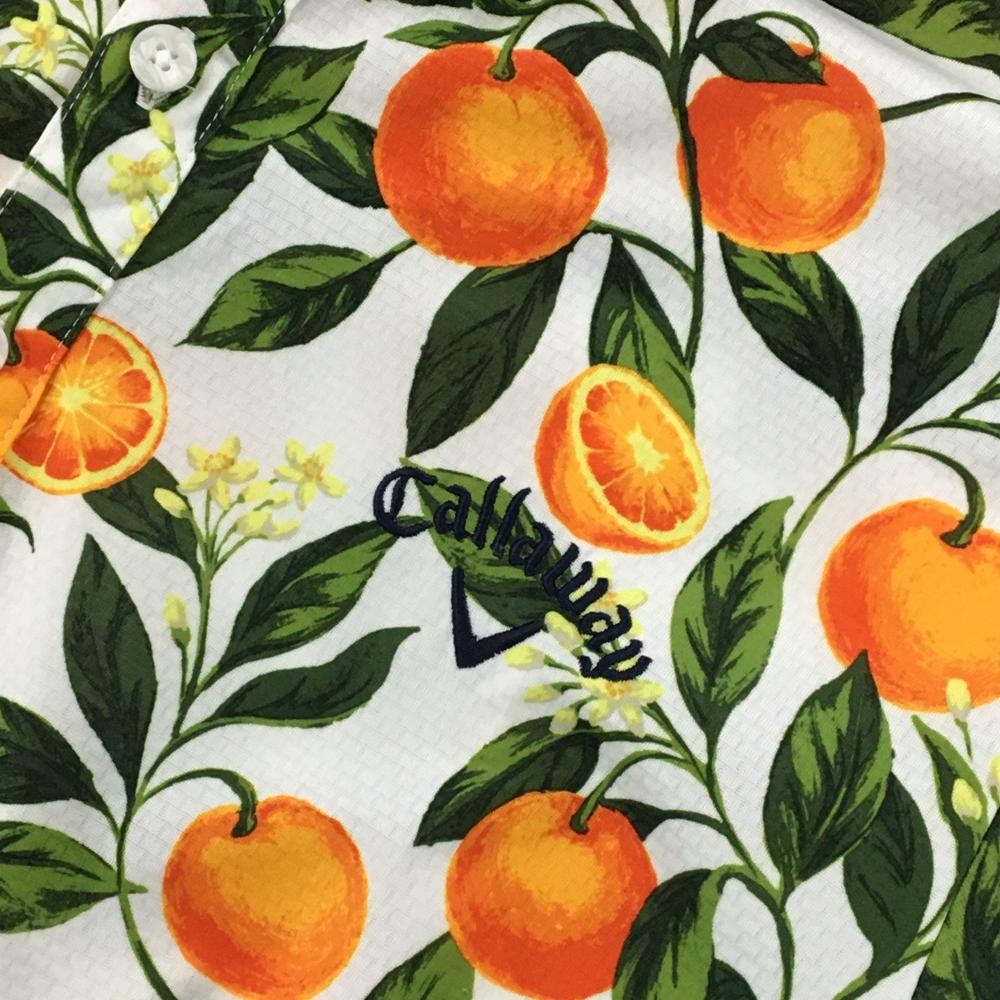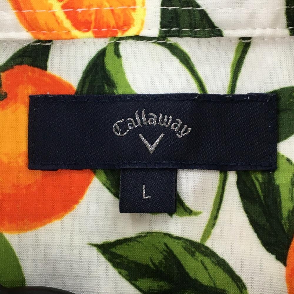 キャロウェイ 半袖ポロシャツ 白×オレンジ×グリーン オレンジ総柄 メンズ L ゴルフウェア Callaway