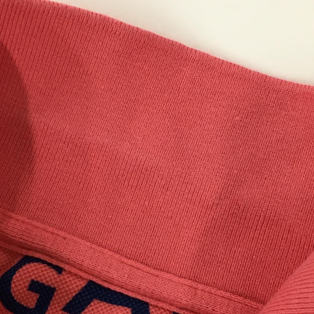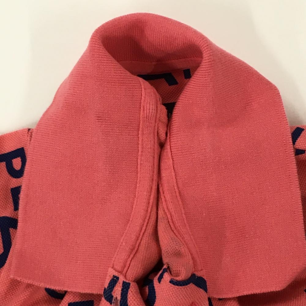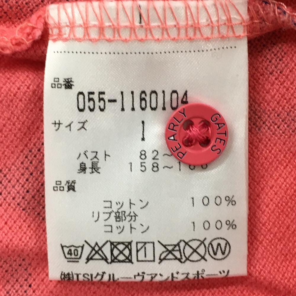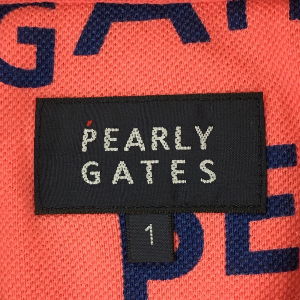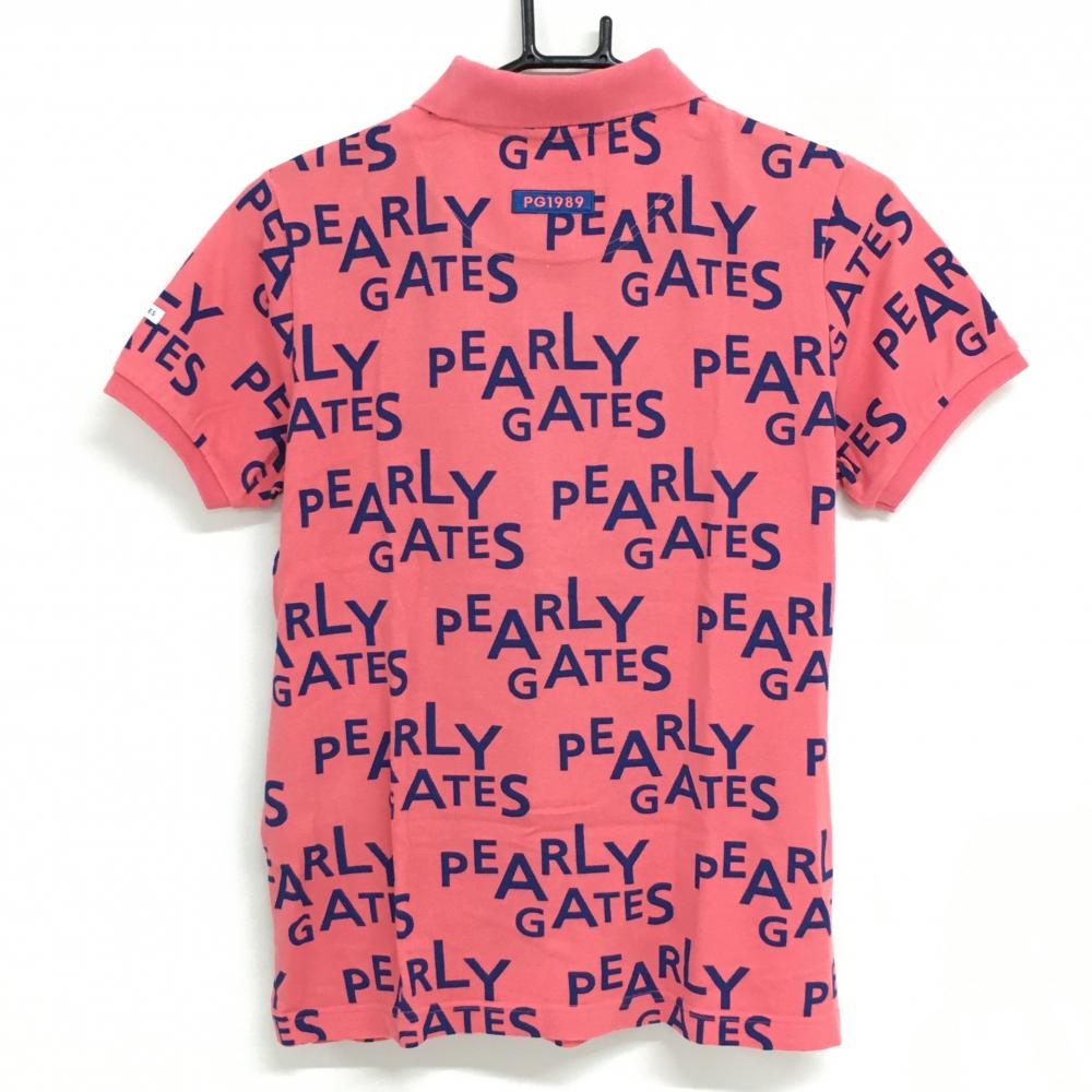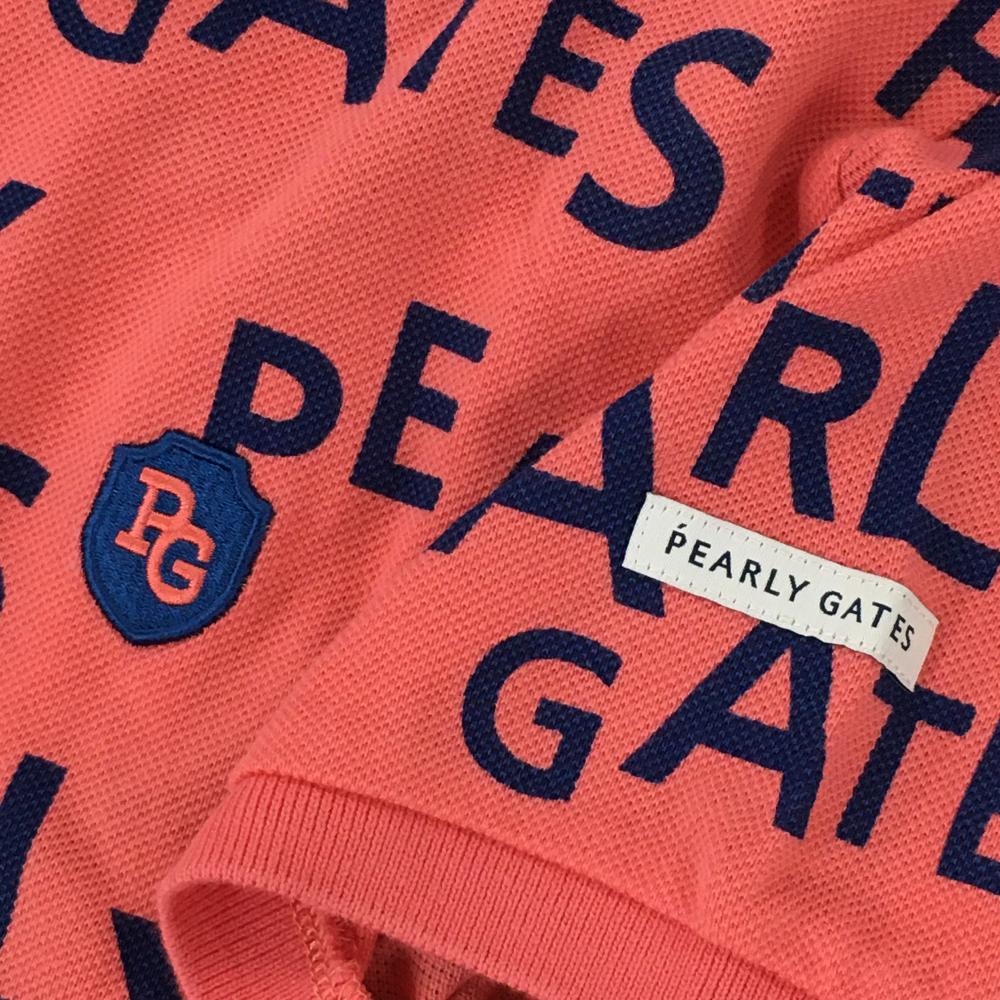 【美品】パーリーゲイツ 半袖ポロシャツ サーモンピンク系×ネイビー ロゴ総柄 レディース 1(M) ゴルフウェア PEARLY GATES