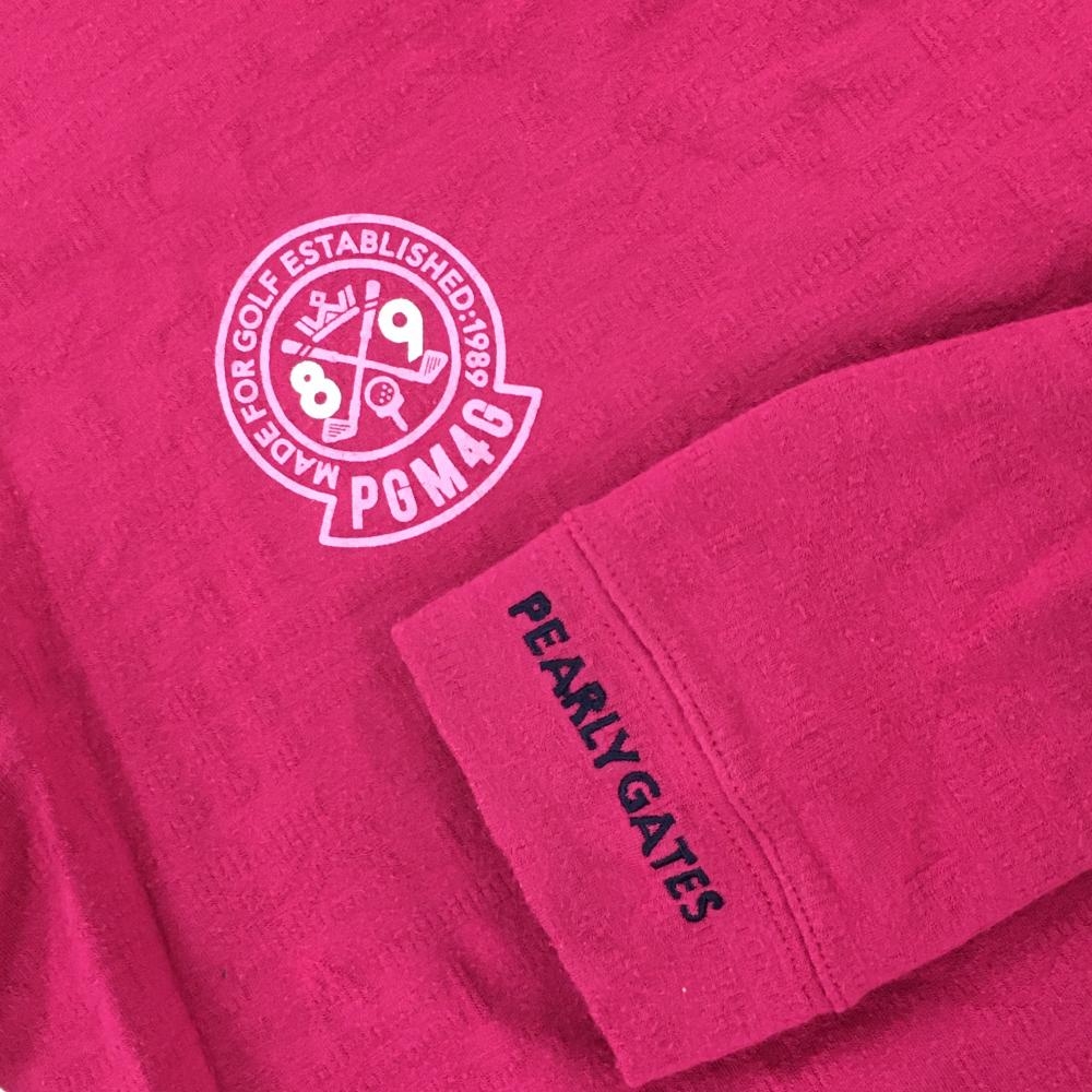 パーリーゲイツ 長袖ハイネックシャツ ピンク 総柄織生地 ロゴプリント レディース 1(M) ゴルフウェア 2023年モデル PEARLY GATES