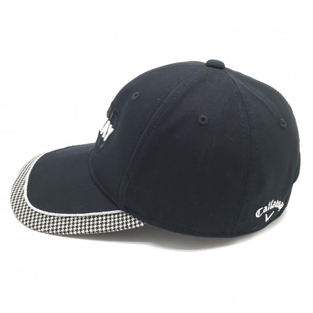 【美品】キャロウェイ キャップ 黒×白 つば縁千鳥格子 立体ロゴ刺しゅう FR ゴルフウェア Callaway