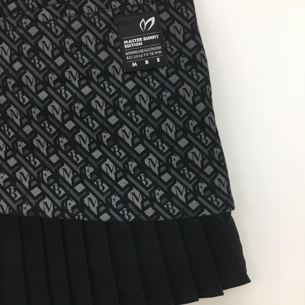 【超美品】マスターバニー スカート 黒×グレー 斜めロゴ総柄 ストレッチ レディース 0(S) ゴルフウェア MASTER BUNNY EDITION