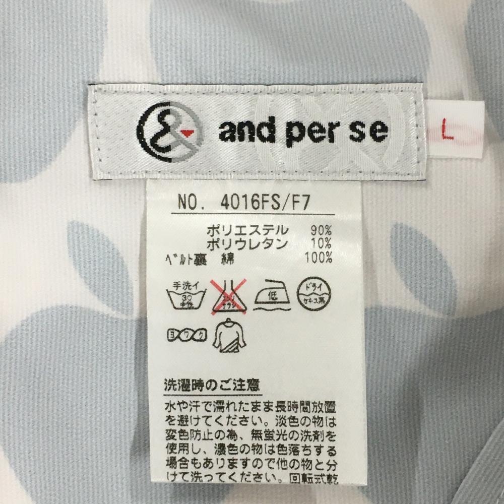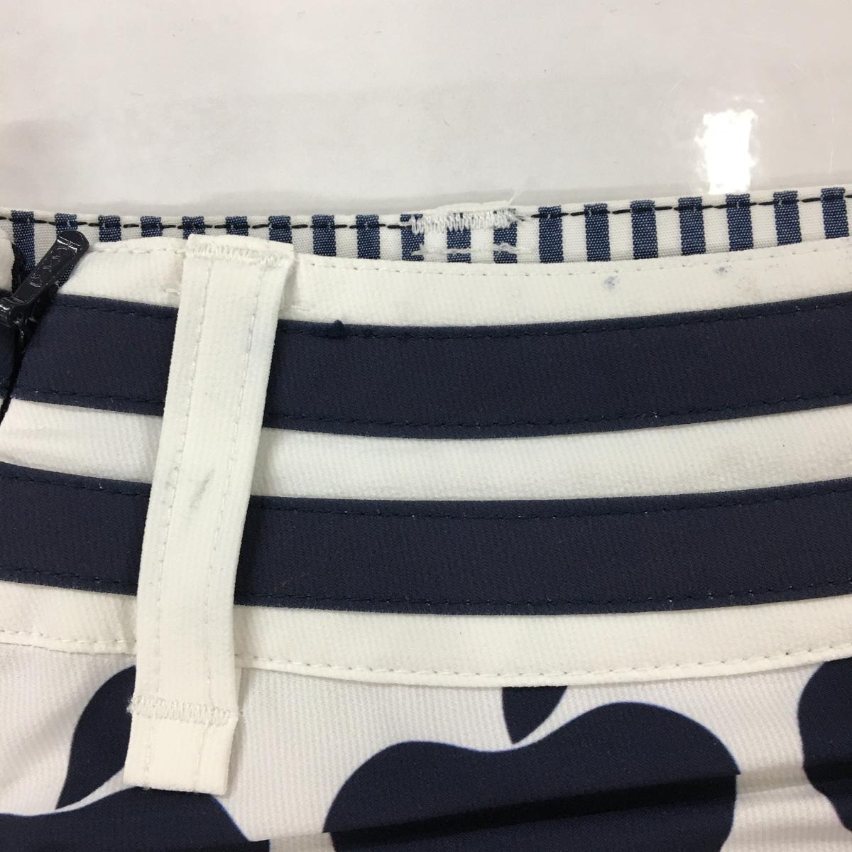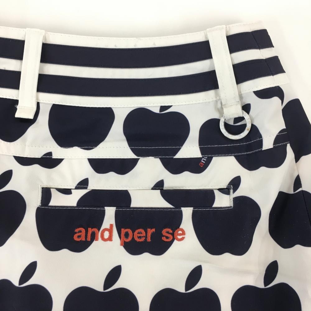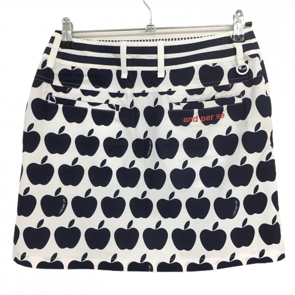 【美品】アンパスィ スカート 白×ネイビー リンゴ総柄 ボックスプリーツ ウエストライン レディース L ゴルフウェア and per se