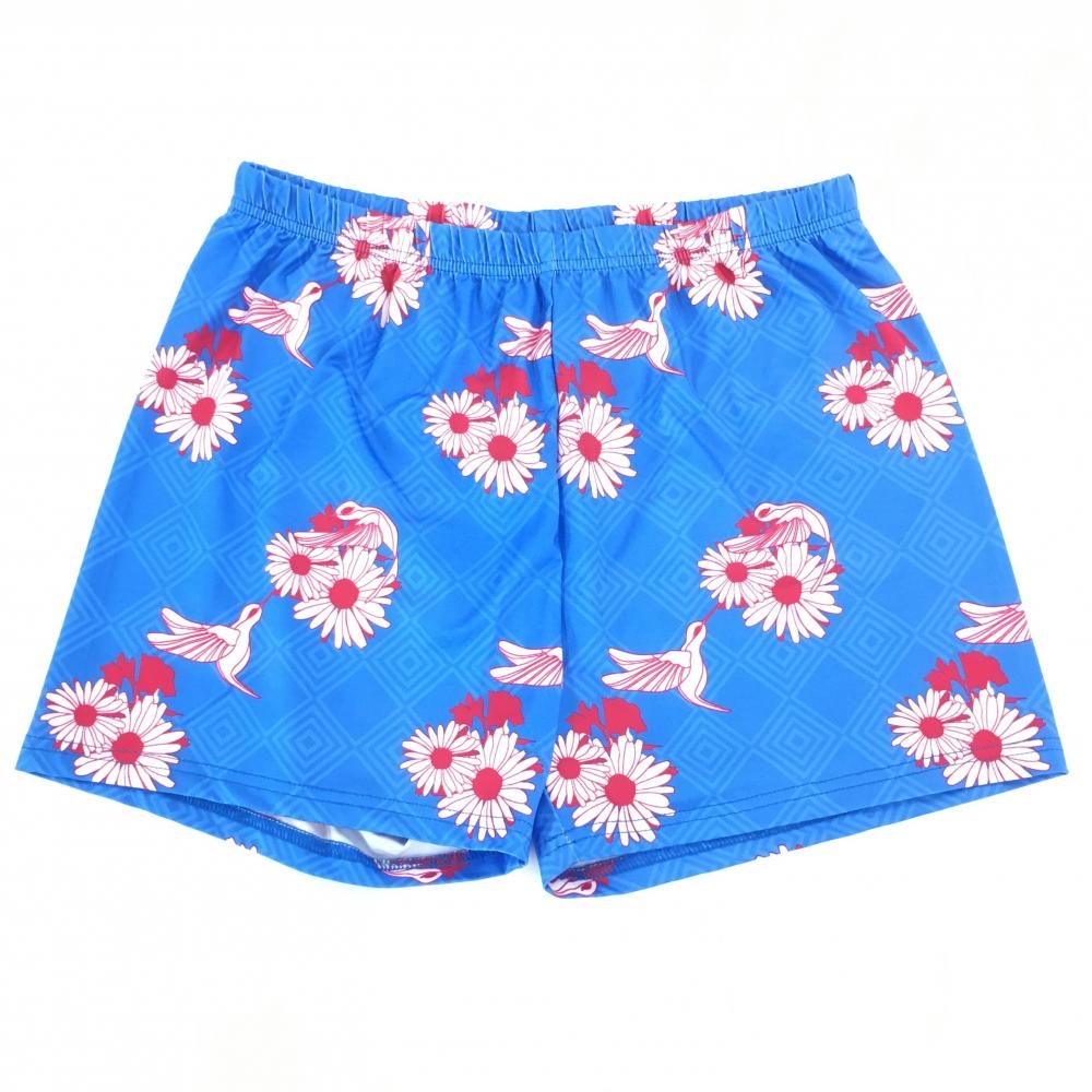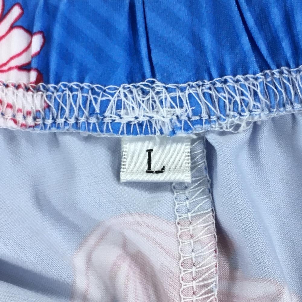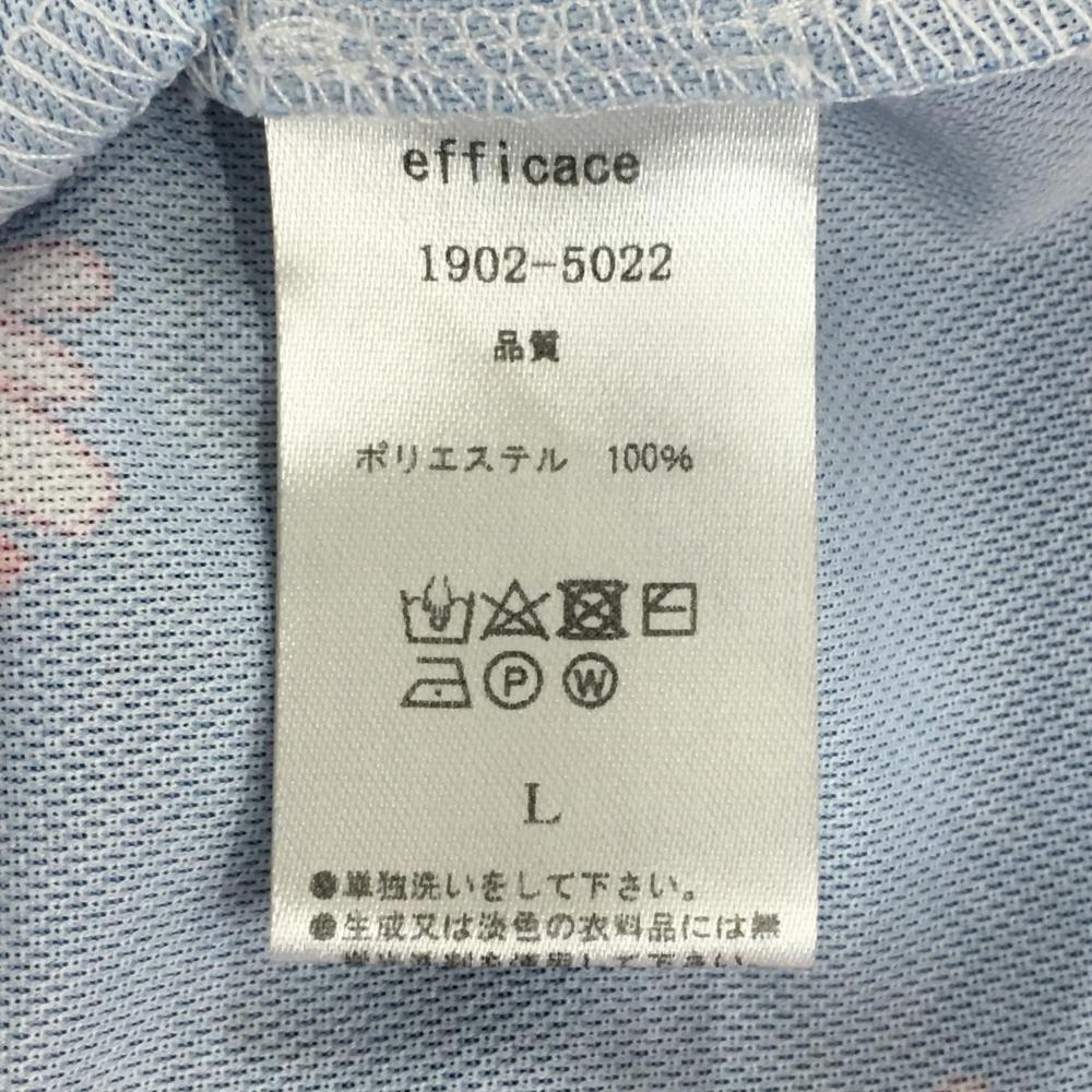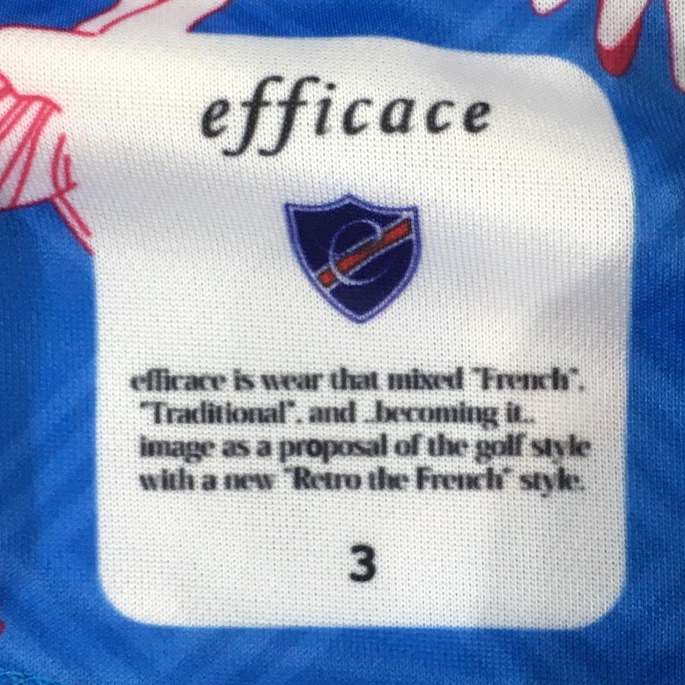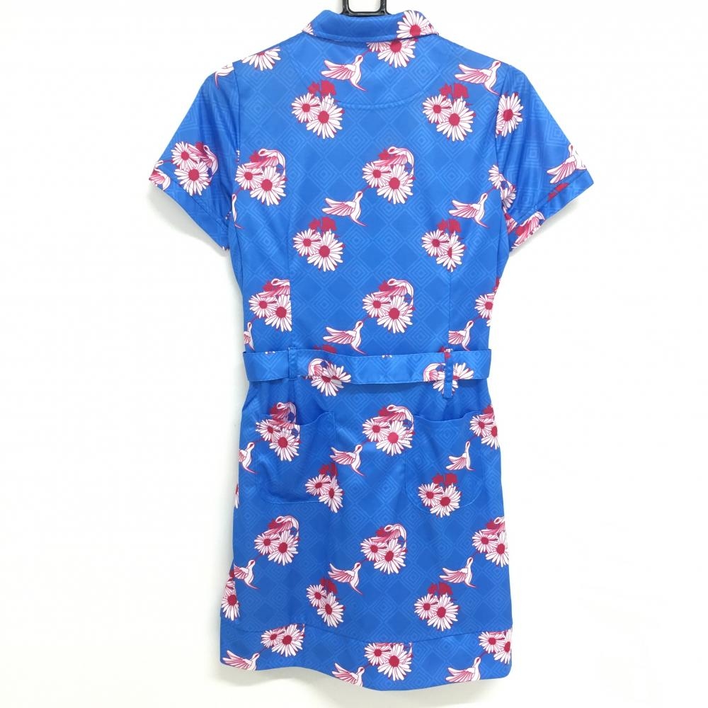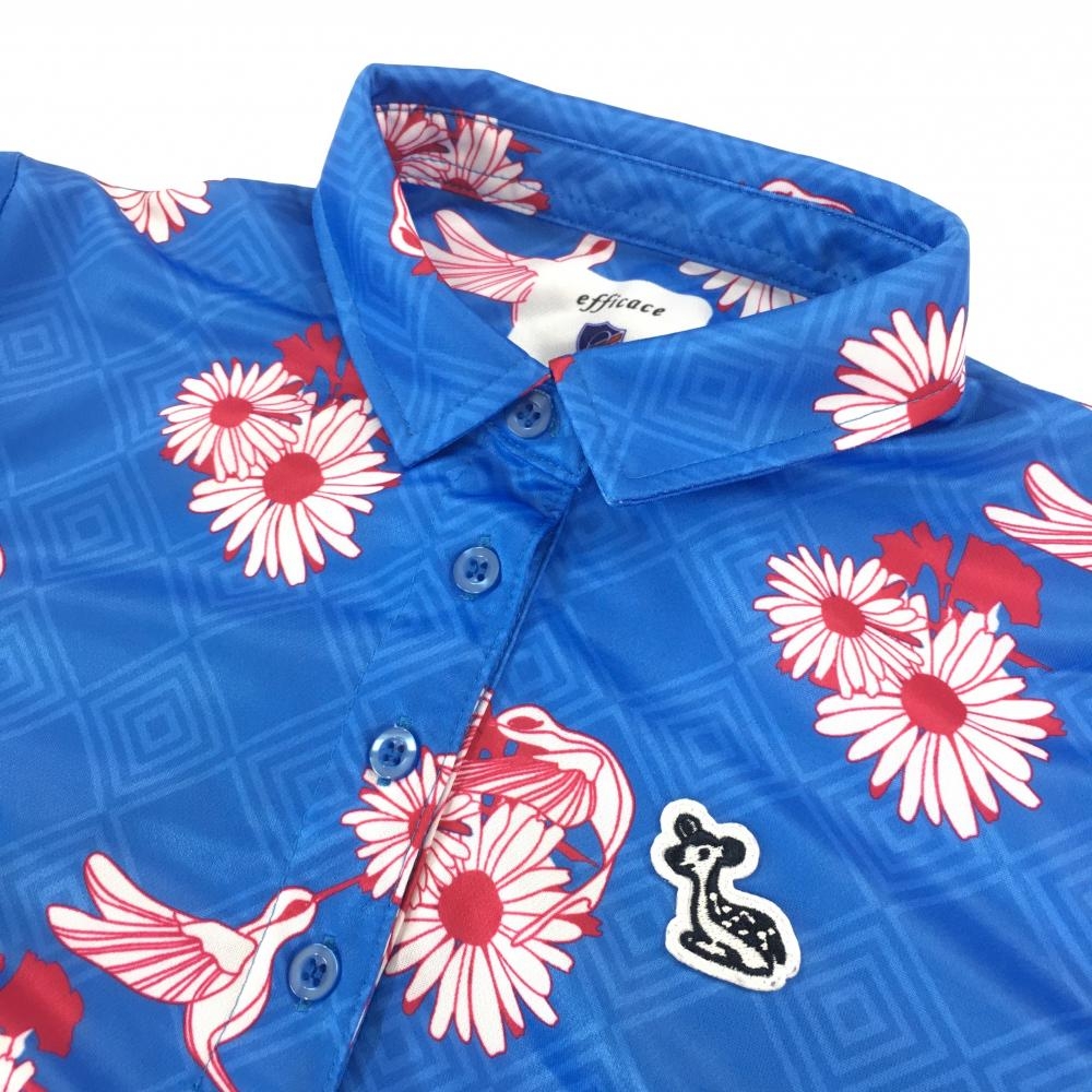 【超美品】エフィカス 半袖ポロワンピース ライトブルー×ボルドー系 総柄 花 鳥 地模様 レディース 3(L) ゴルフウェア efficace
