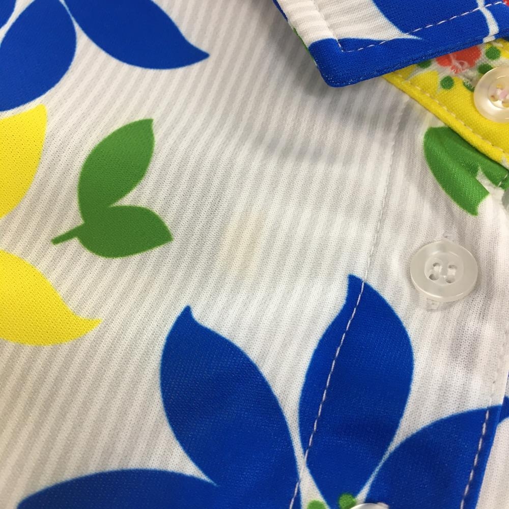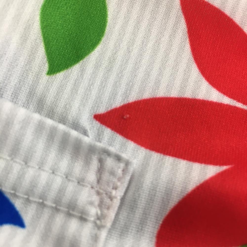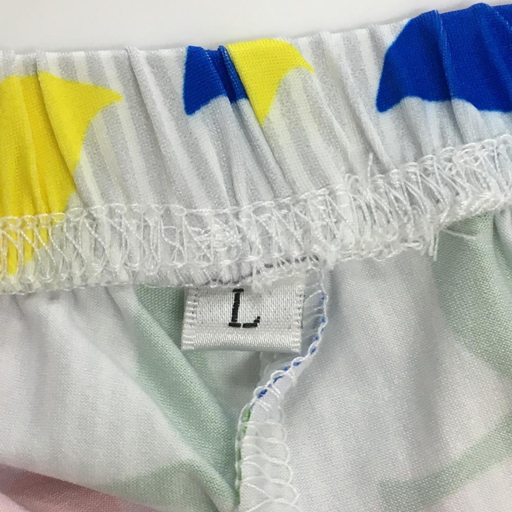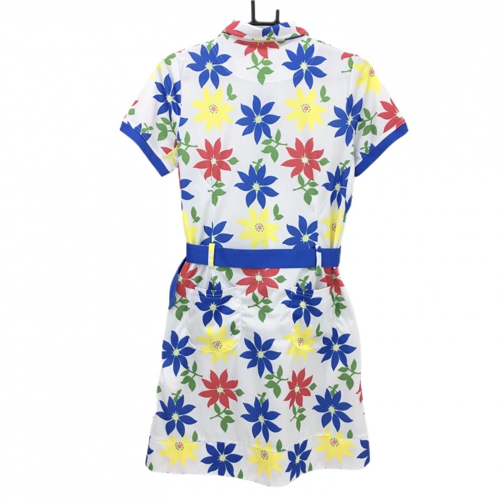 【美品】エフィカス ワンピース ライトグレー×ブルー×レッド 花柄 細ストライプ レディース 3(L) ゴルフウェア efficace
