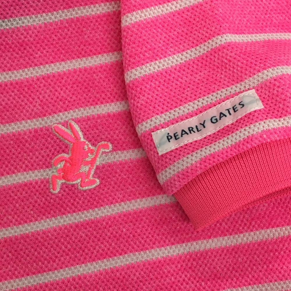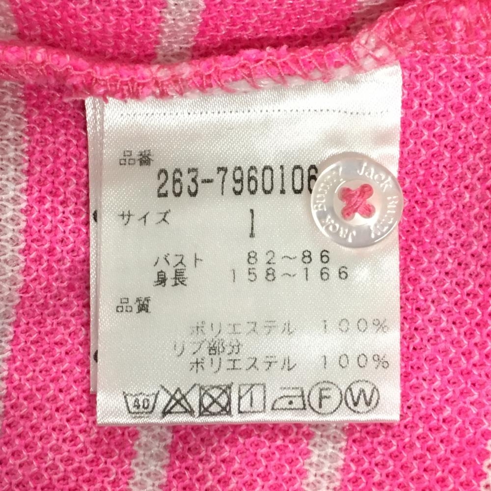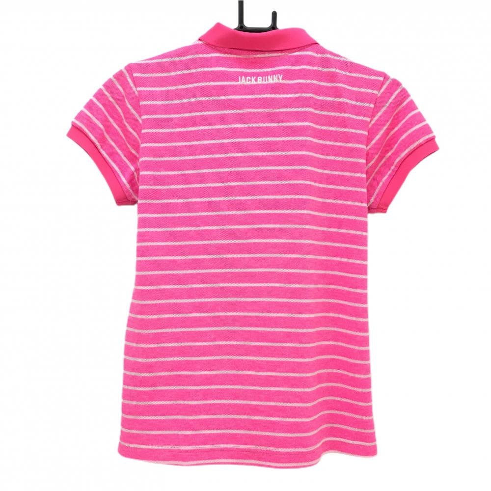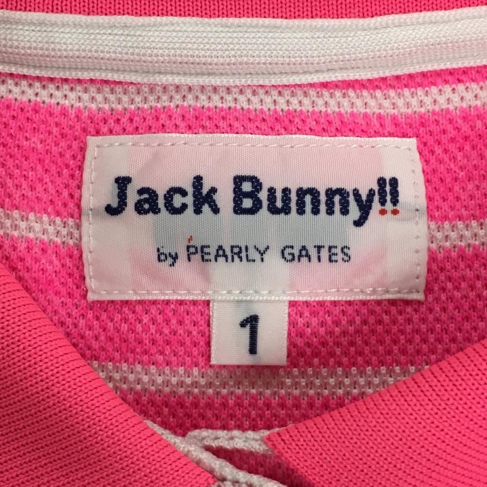 【超美品】ジャックバニー 半袖ポロシャツ ピンク×白 ボーダー ラビット刺しゅう レディース 1(M) ゴルフウェア Jack Bunny