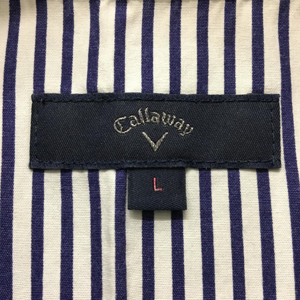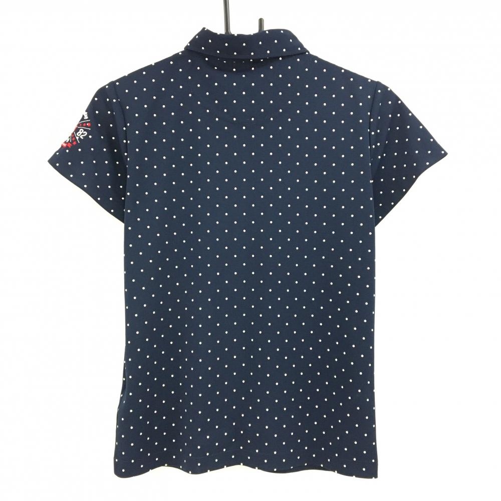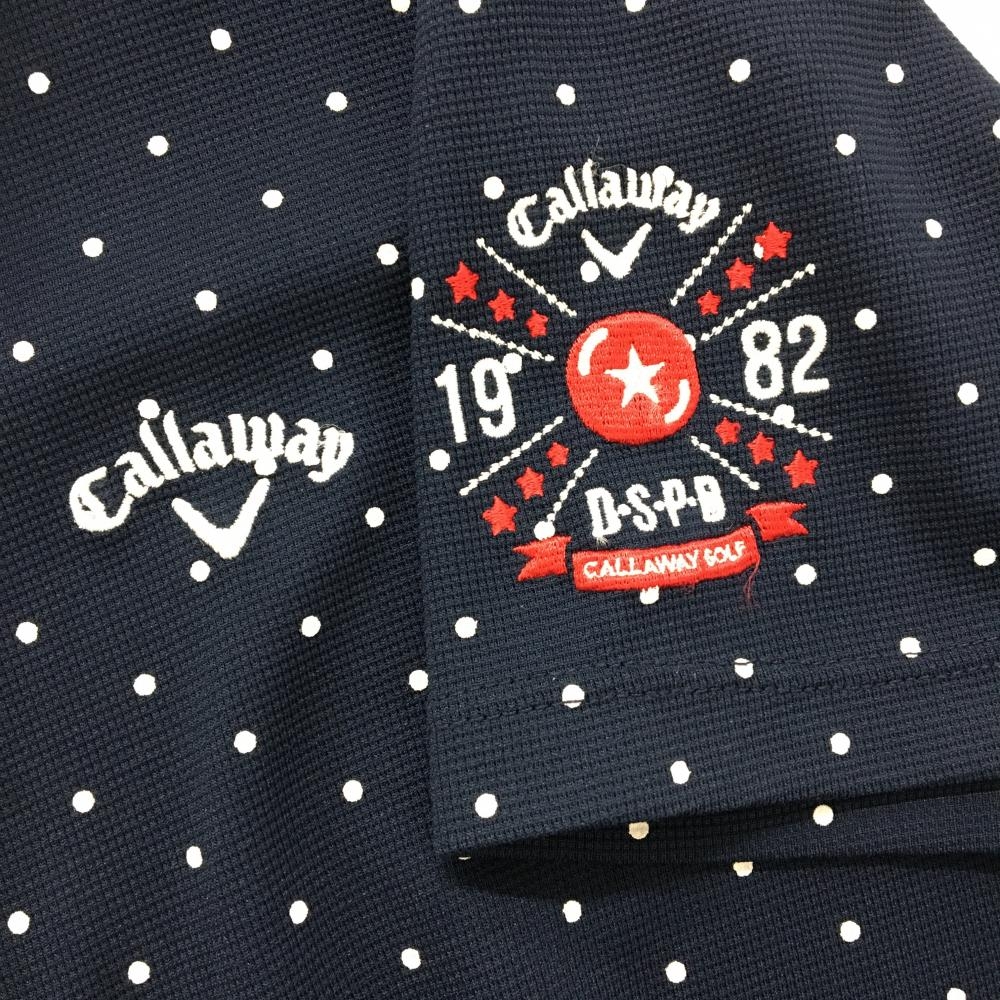 【美品】キャロウェイ 半袖ポロシャツ ネイビー×白 ドット 襟裏ボーダー レディース L ゴルフウェア Callaway