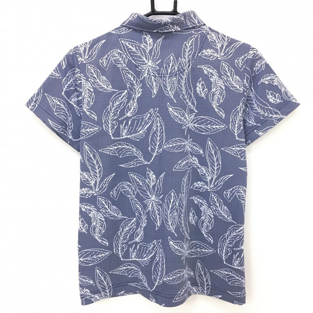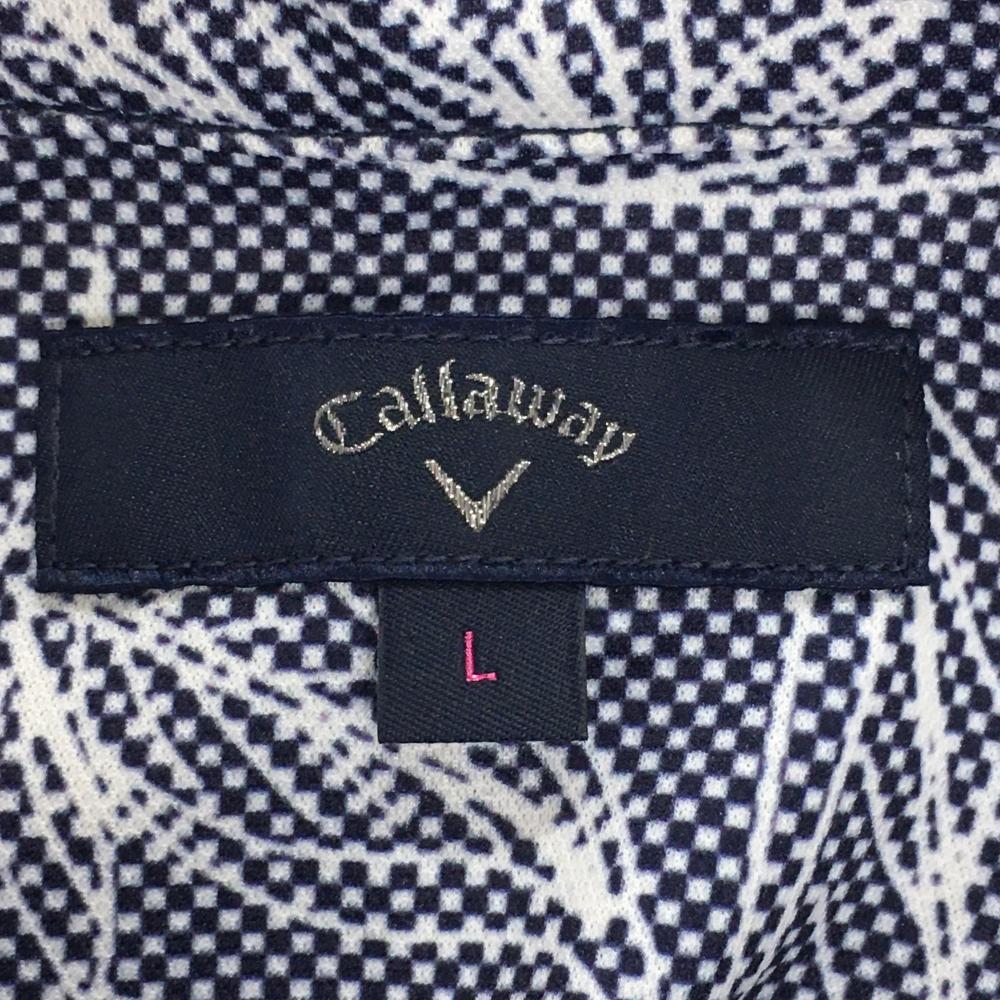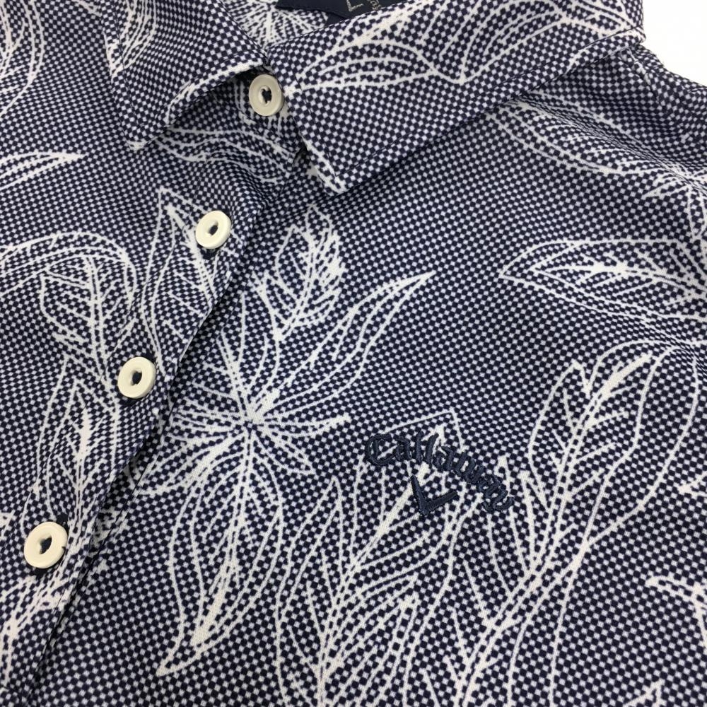 【超美品】キャロウェイ 半袖ポロシャツ ネイビー×白 リーフ柄 レディース L ゴルフウェア Callaway
