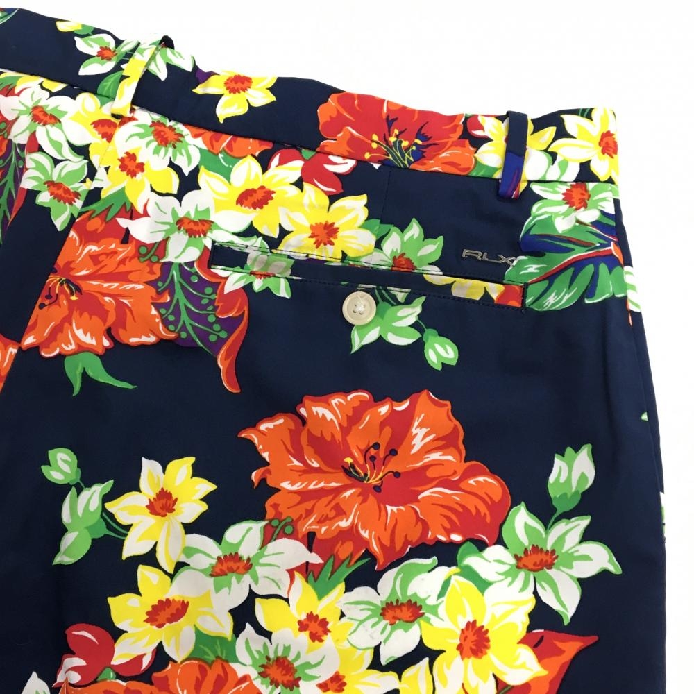 【美品】RLXラルフローレン ハーフパンツ ネイビー×マルチカラー 花柄 メンズ 34 ゴルフウェア Ralph Lauren