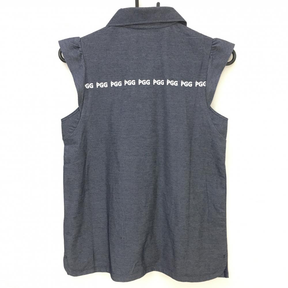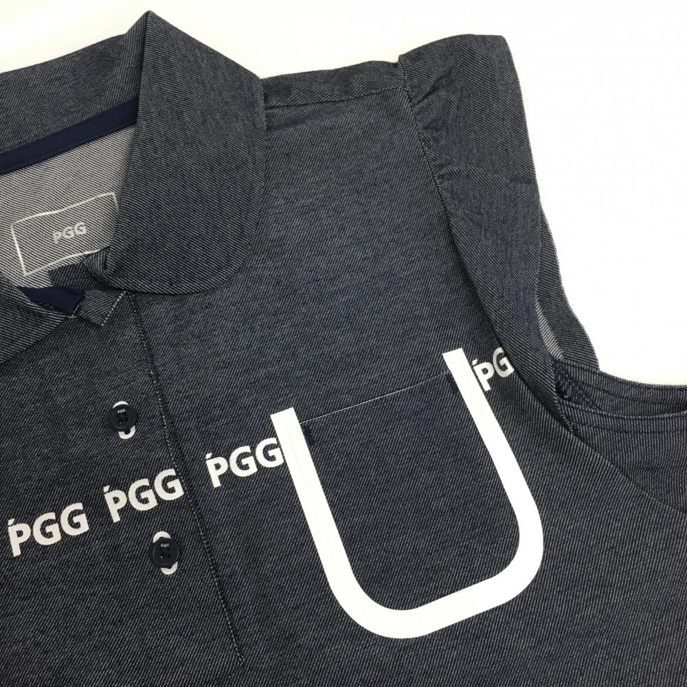 【超美品】PGGパーリーゲイツ ノースリーブポロシャツ 杢ネイビー×白 胸ポケット 袖フリル レディース 0(S) ゴルフウェア PEARLY GATES
