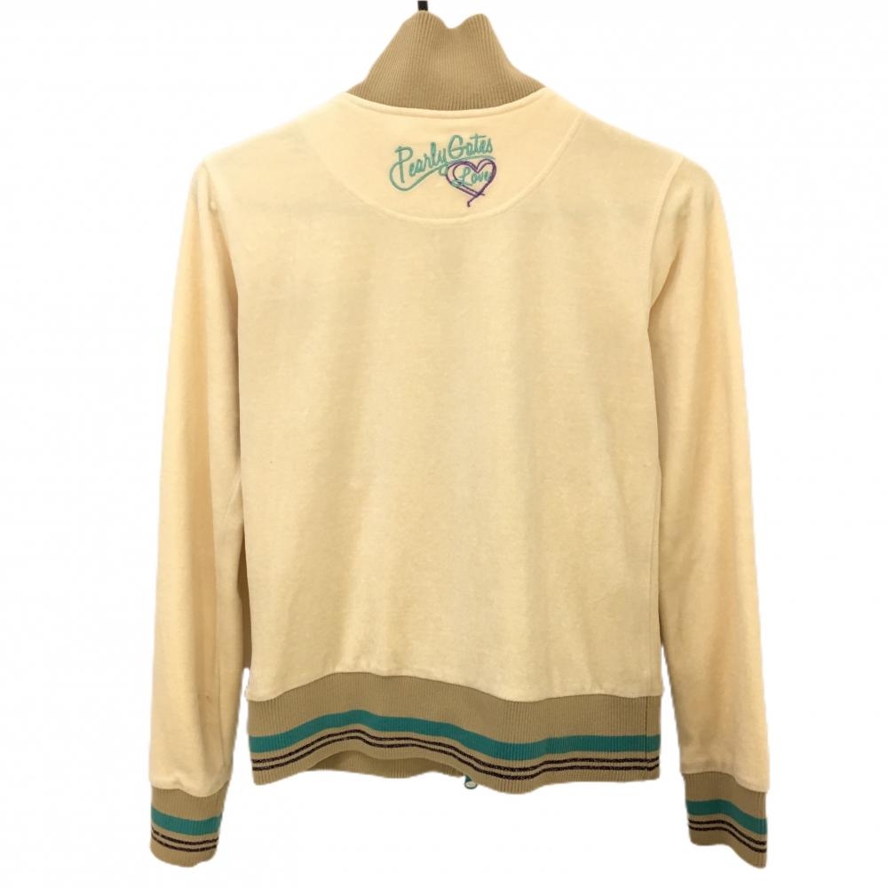パーリーゲイツ ジャケット アイボリー×ブルーグリーン ベロア調 ロゴ刺しゅう レディース 1(M) ゴルフウェア PEARLY GATES