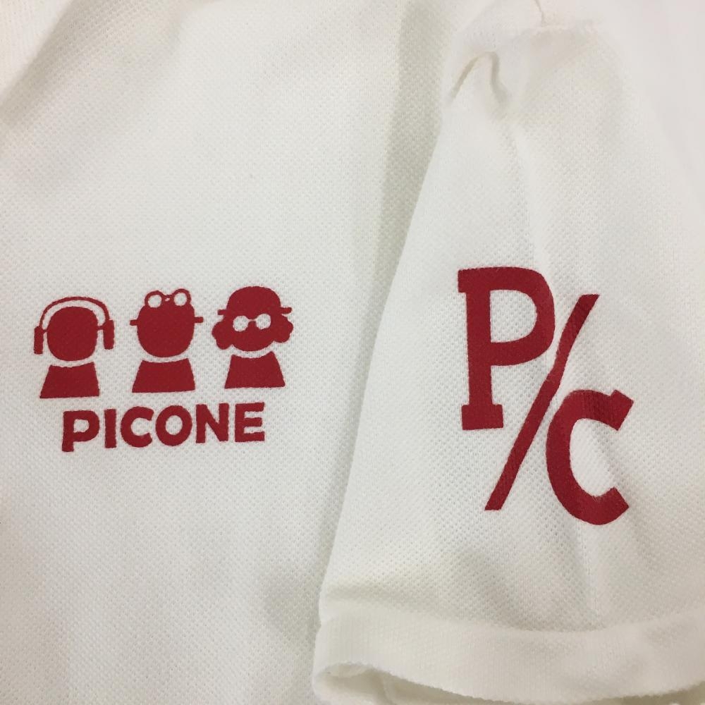 ピッコーネ 半袖ポロシャツ 白×レッド ロゴプリント レディース Ⅱ ゴルフウェア PICONE