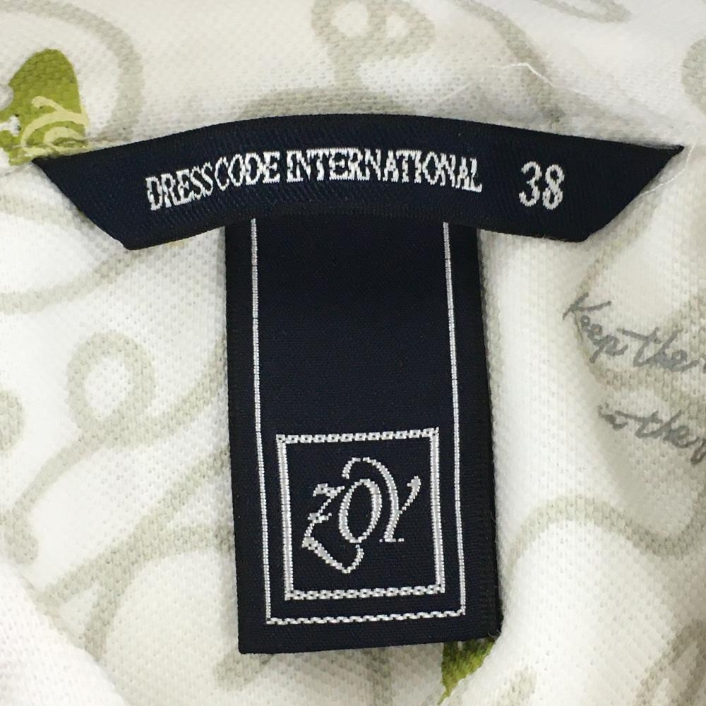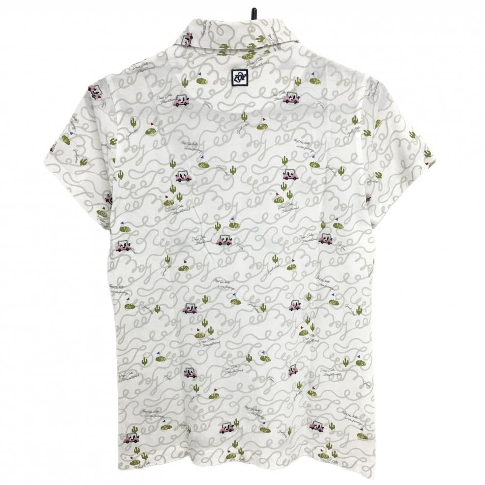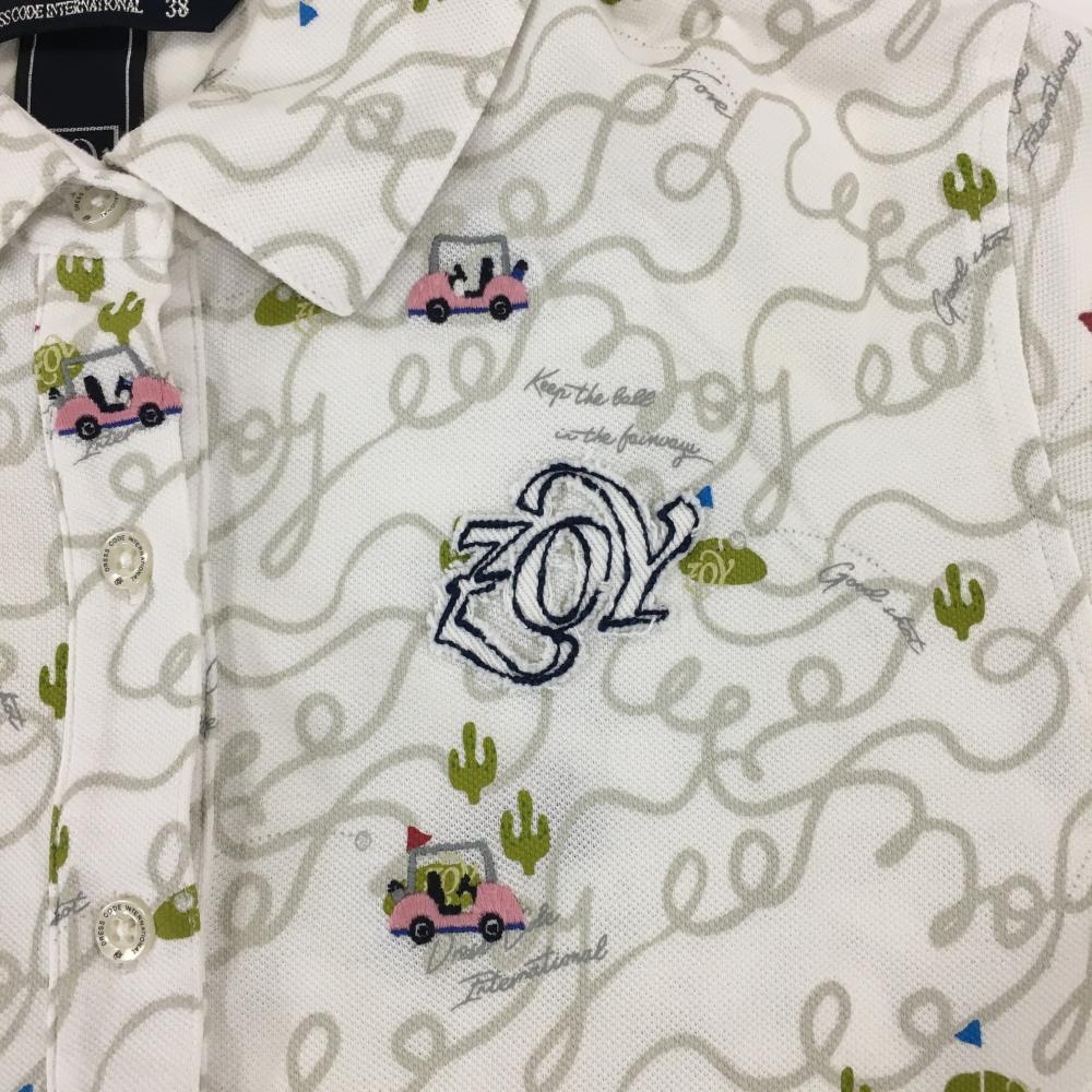【美品】ゾーイ 半袖ポロシャツ 白×ライトグリーン×グレー系 総柄 ゴルフ カート刺しゅう レディース 38 ゴルフウェア ZOY