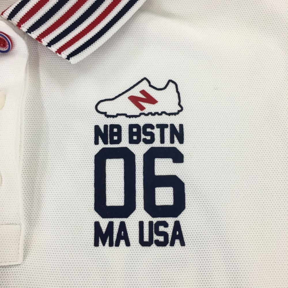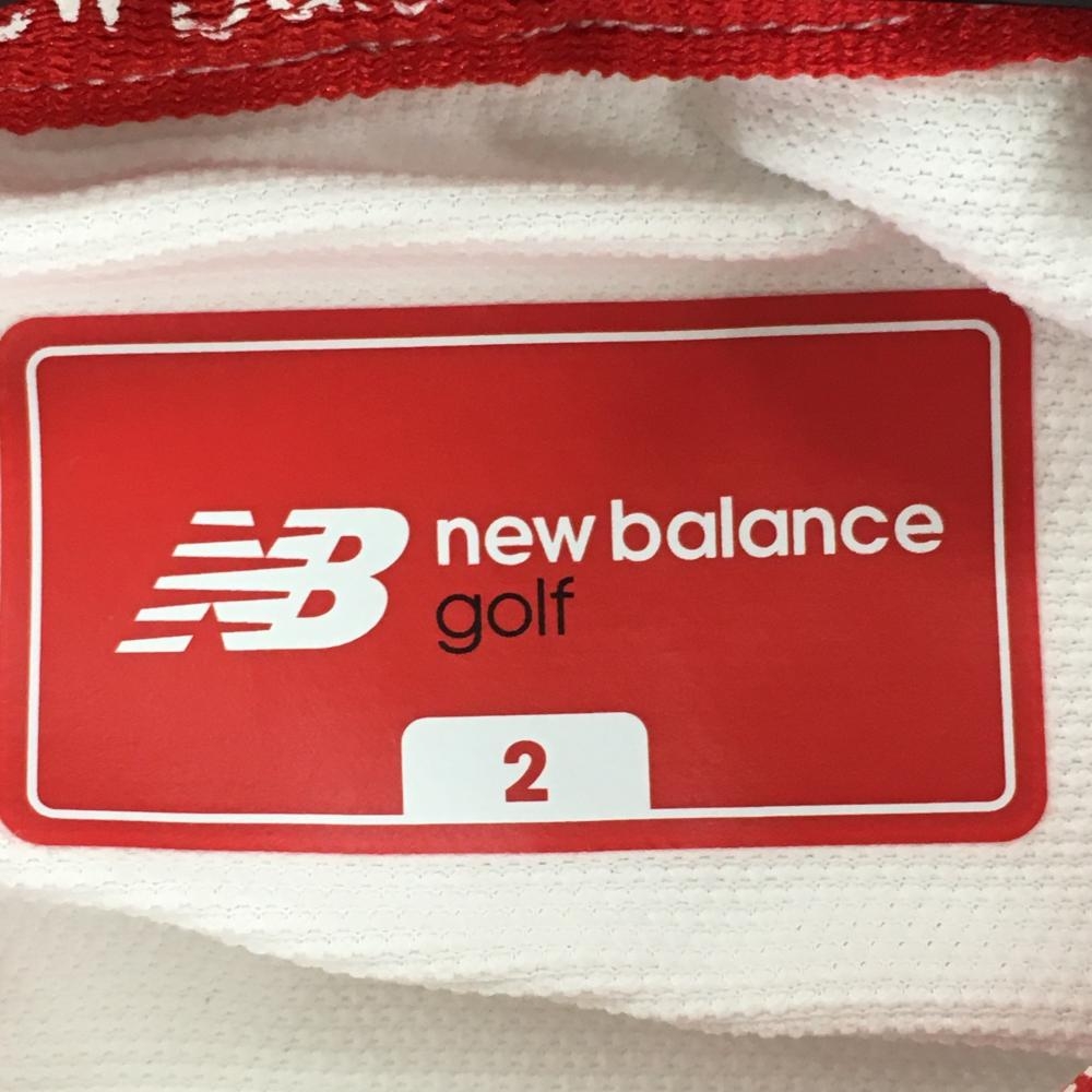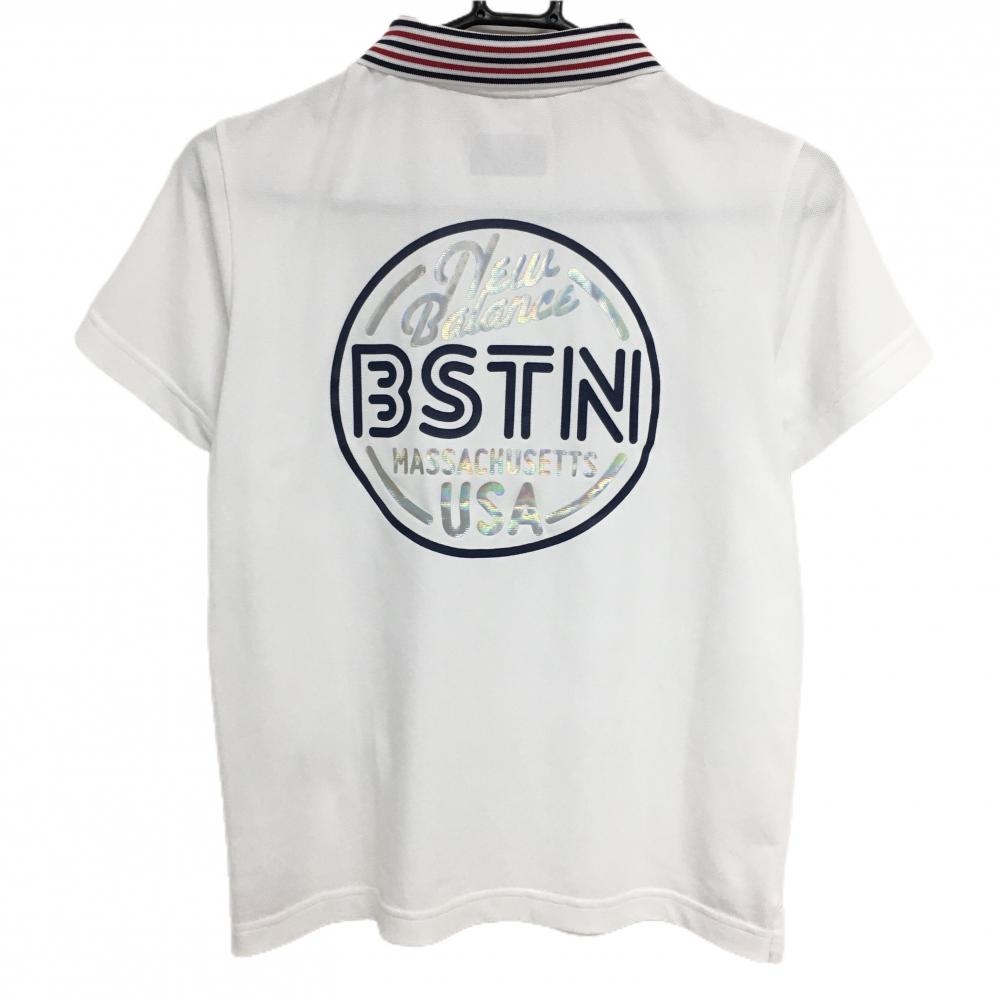 【美品】ニューバランスゴルフ 半袖ポロシャツ 白×ネイビー×レッド 襟ボーダー 胸ロゴ レディース 2 ゴルフウェア New Balance