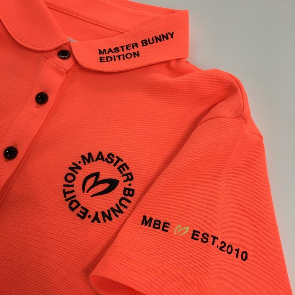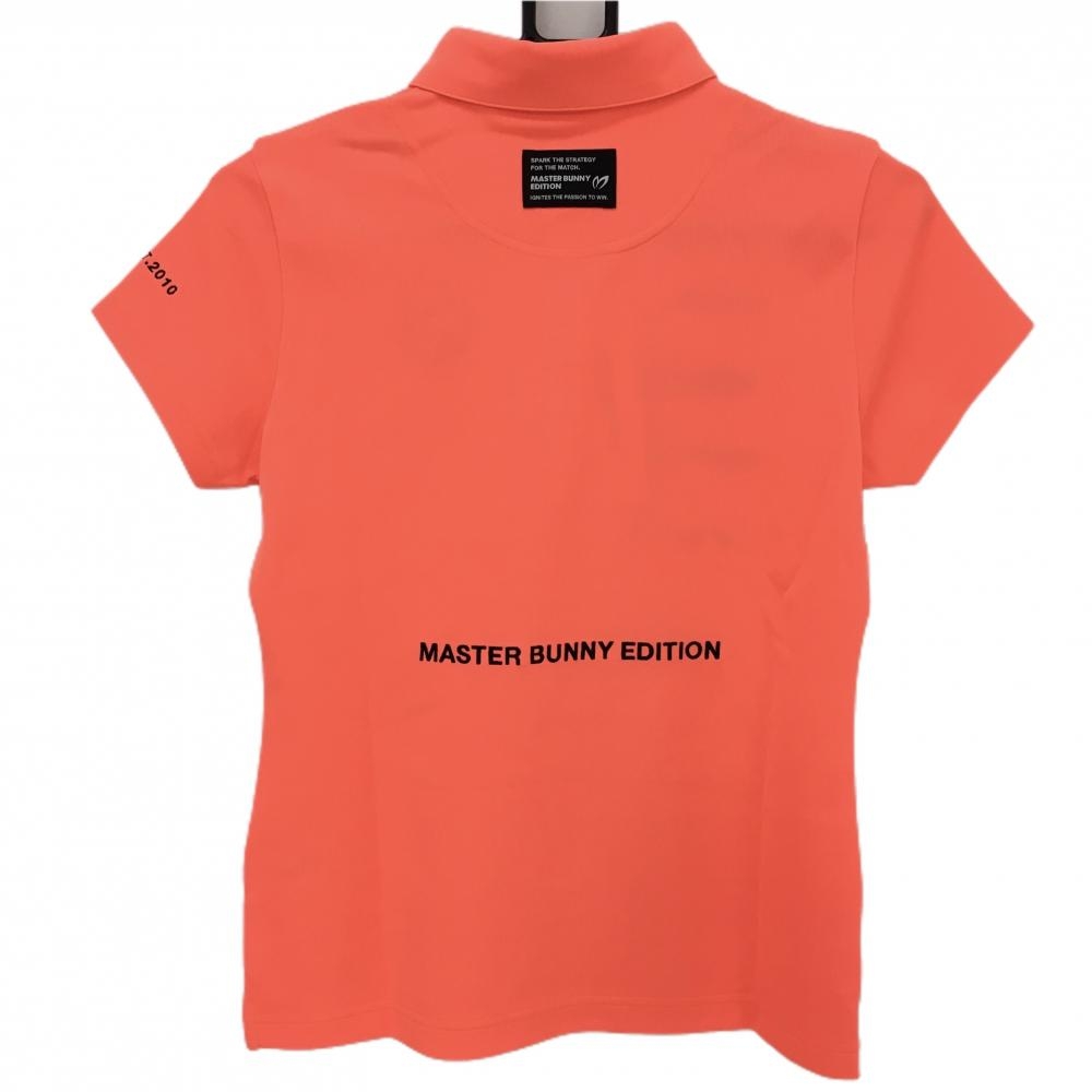 【新品】マスターバニー 半袖ポロシャツ 蛍光オレンジ ロゴ黒 ストレッチ レディース 0(S) ゴルフウェア MASTER BUNNY EDITION