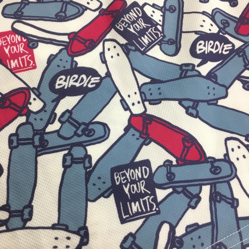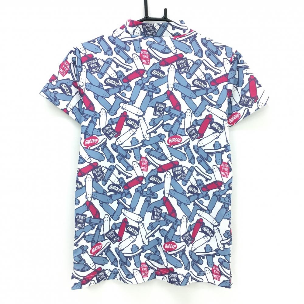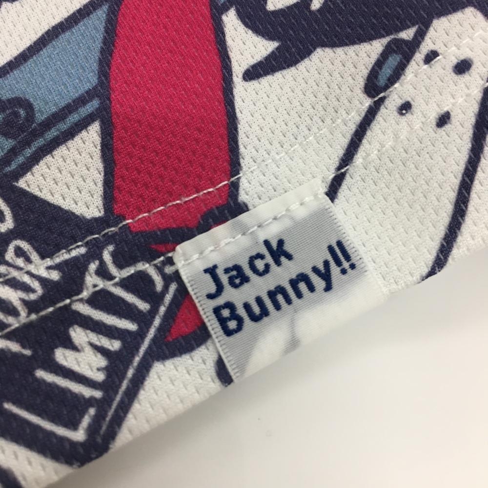 【超美品】ジャックバニー 半袖ハイネックシャツ 白×スモーキーブルー×ピンク スケボー総柄 レディース 2(L) ゴルフウェア Jack Bunny