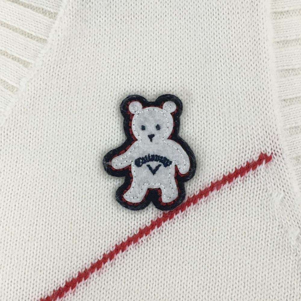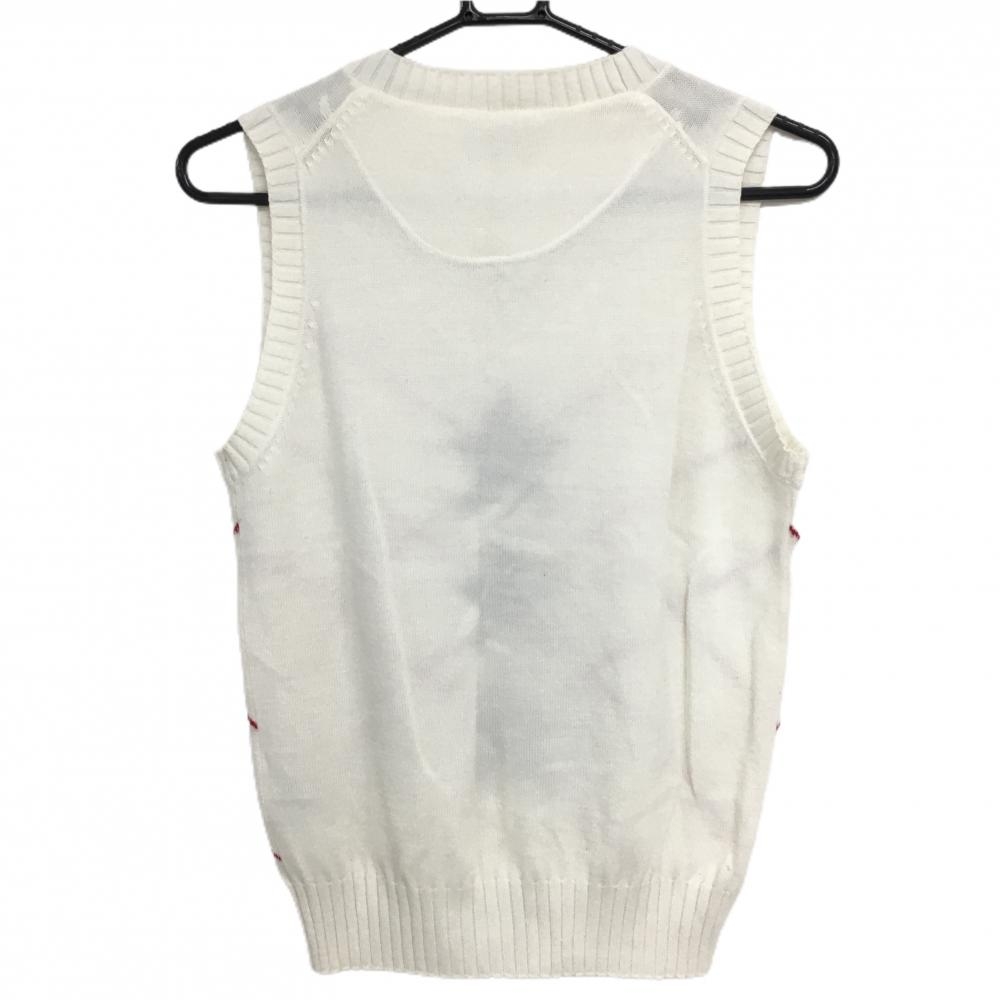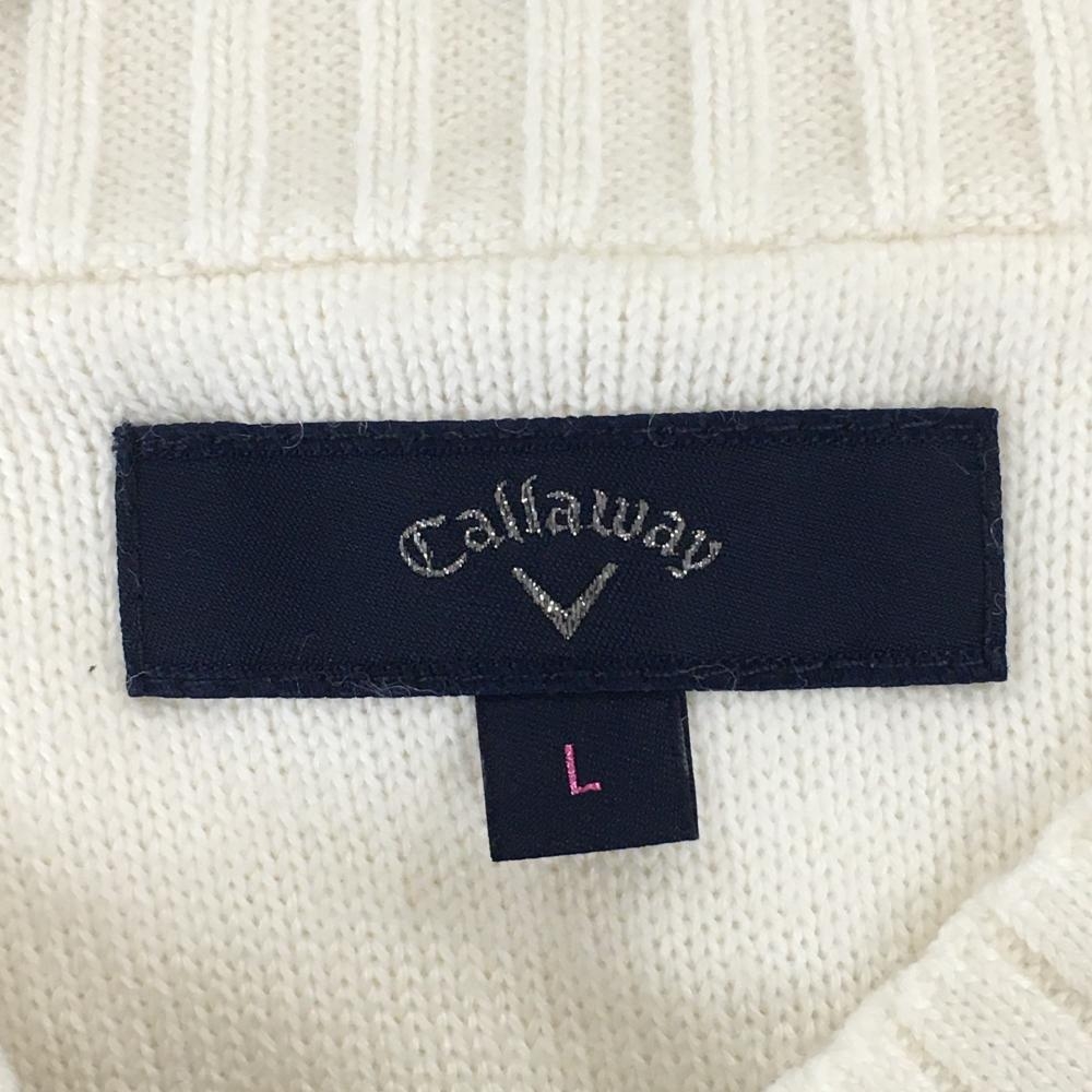 【美品】キャロウェイ ニットベスト 白×レッド×ネイビー 一部星柄×チェック ウール混 Vネック レディース L ゴルフウェア Callaway