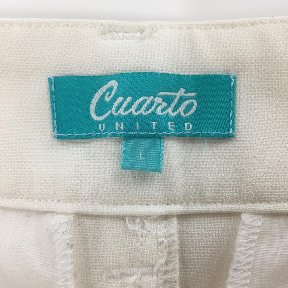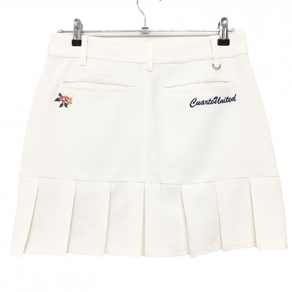 【美品】クアルトユナイテッド スカート 白 後ろプリーツ 花刺しゅう ヤシの木プリント レディース L ゴルフウェア CUARTO UNITED