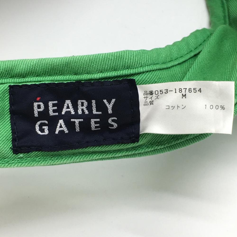 パーリーゲイツ サンバイザー グリーン×白 コットン100% M ゴルフウェア PEARLY GATES