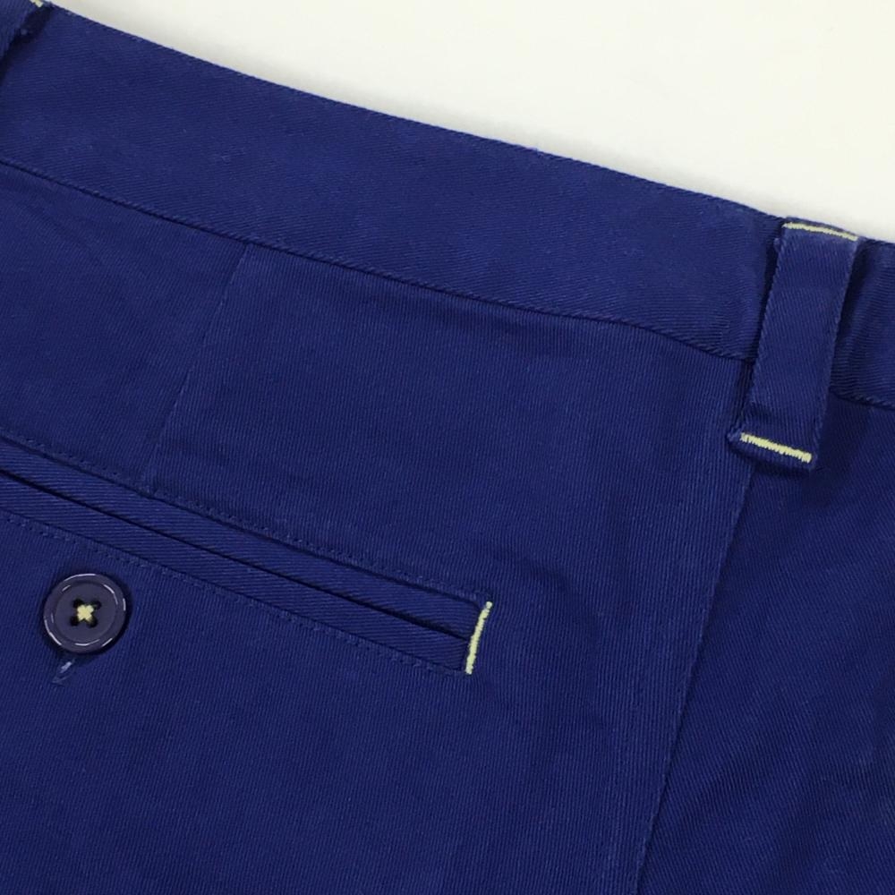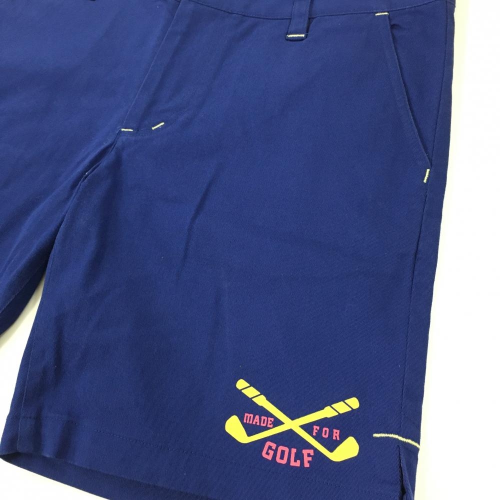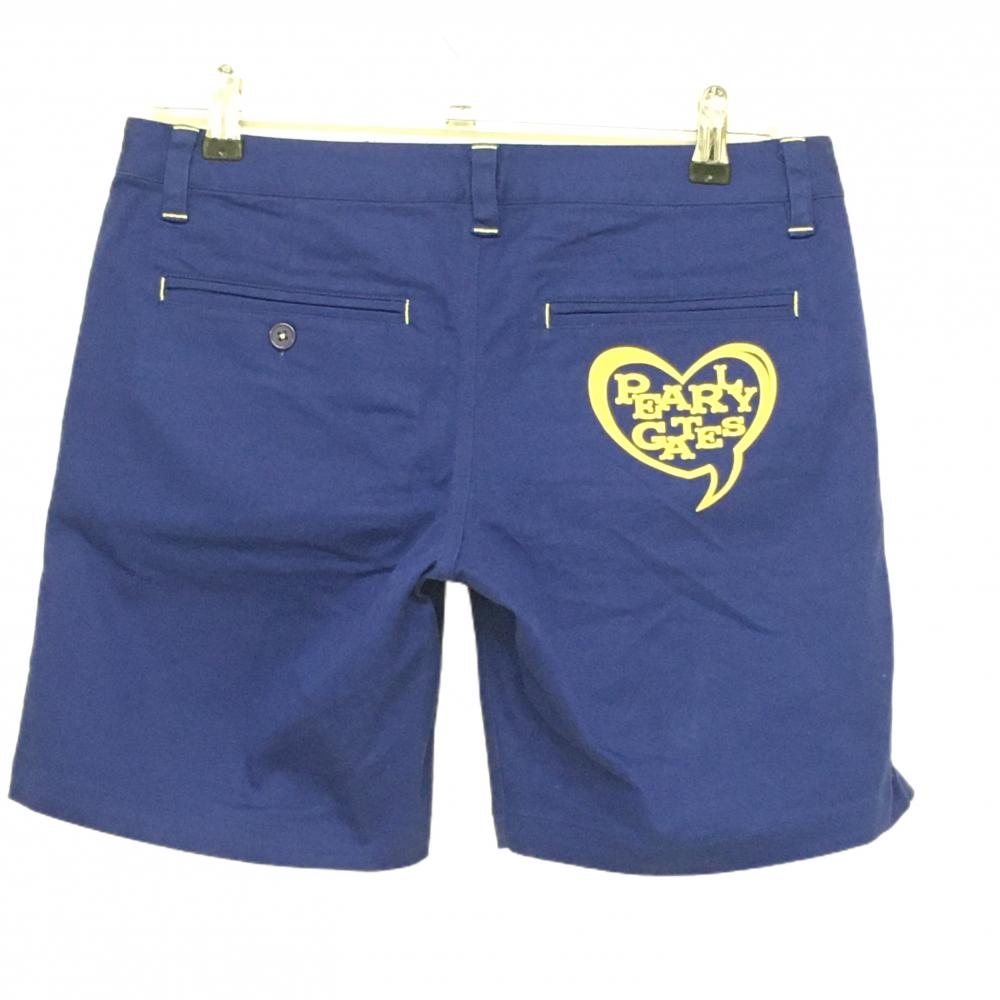 【美品】パーリーゲイツ ショートパンツ ブルー×イエロー ロゴプリント レディース 2(L) ゴルフウェア PEARLY GATES