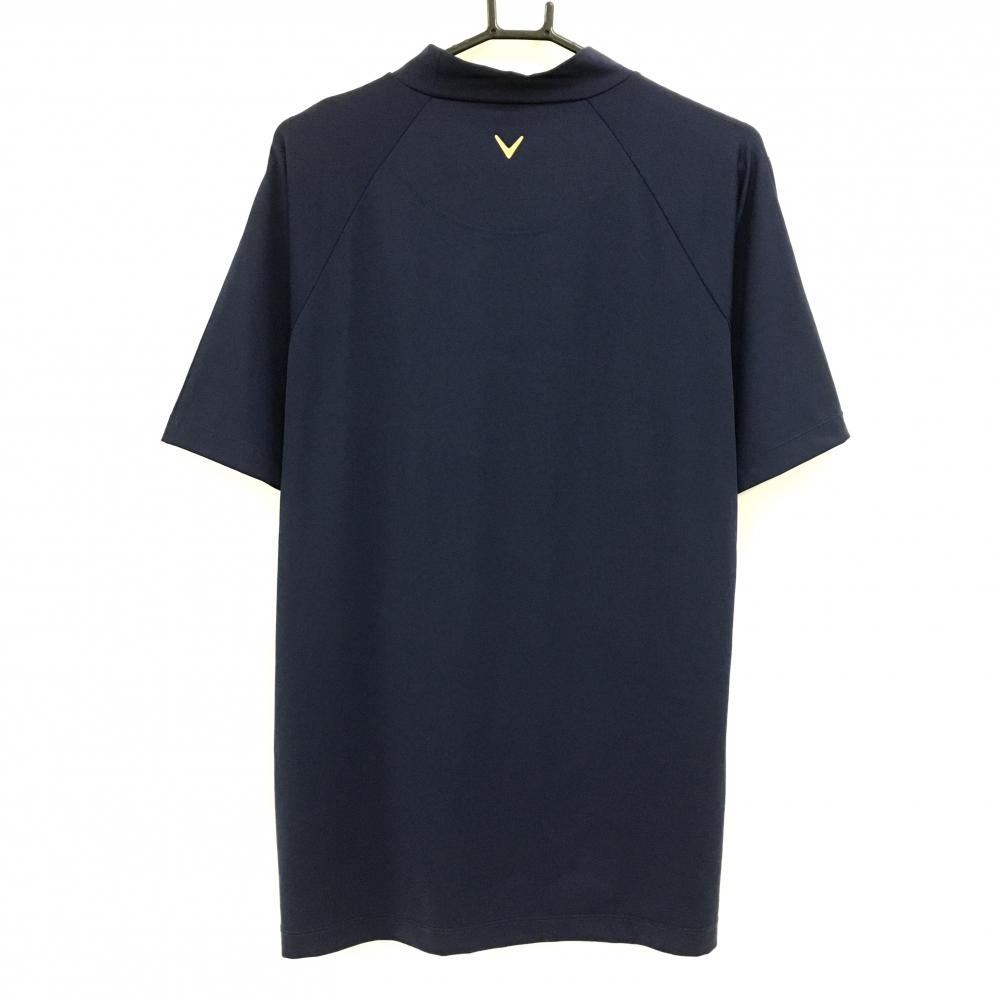 【超美品】キャロウェイ 半袖ハイネックシャツ ネイビー×ライトブラウン ストレッチ メンズ ゴルフウェア Callaway