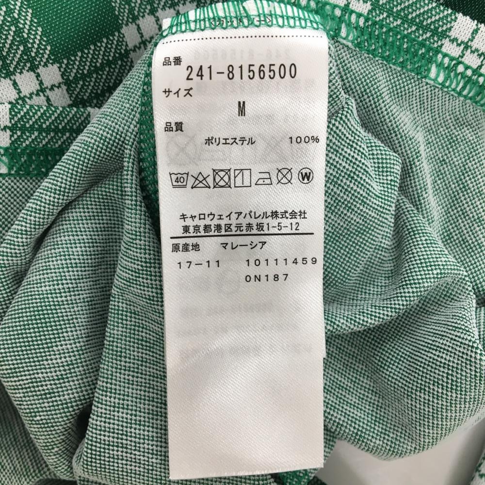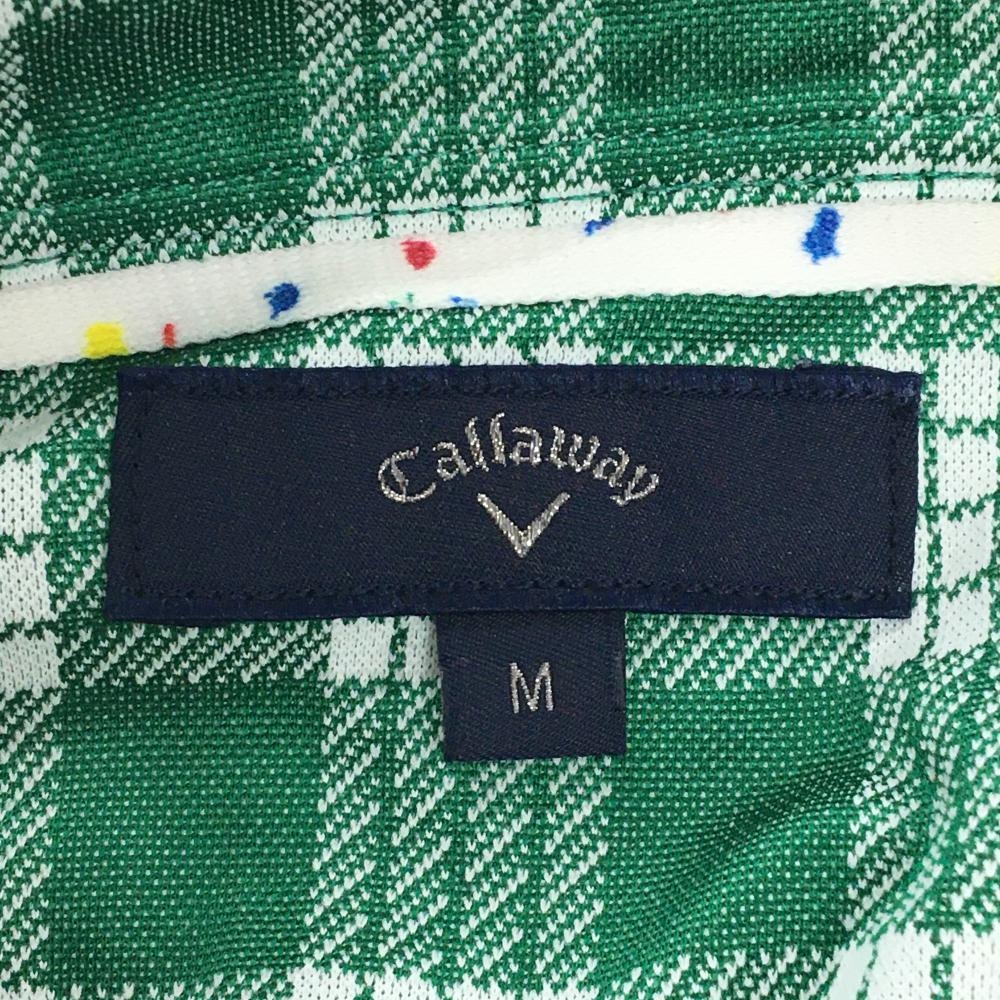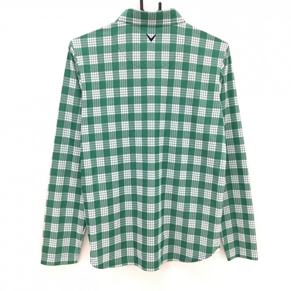 キャロウェイ 長袖ポロシャツ グリーン×白 チェック柄 ロゴ刺しゅう メンズ M ゴルフウェア Callaway