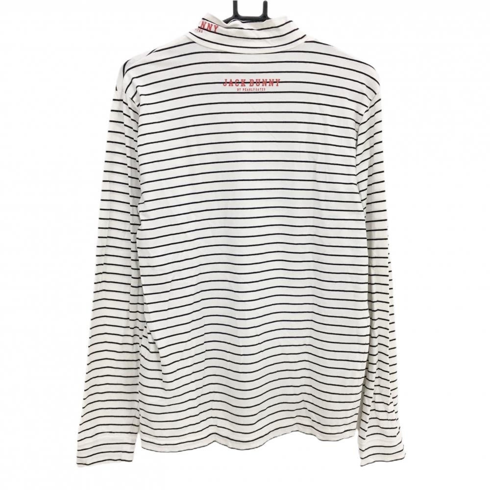 【美品】ジャックバニー 長袖ハイネックシャツ 白×黒 ボーダー ロゴレッド メンズ 6(XL) ゴルフウェア Jack Bunny