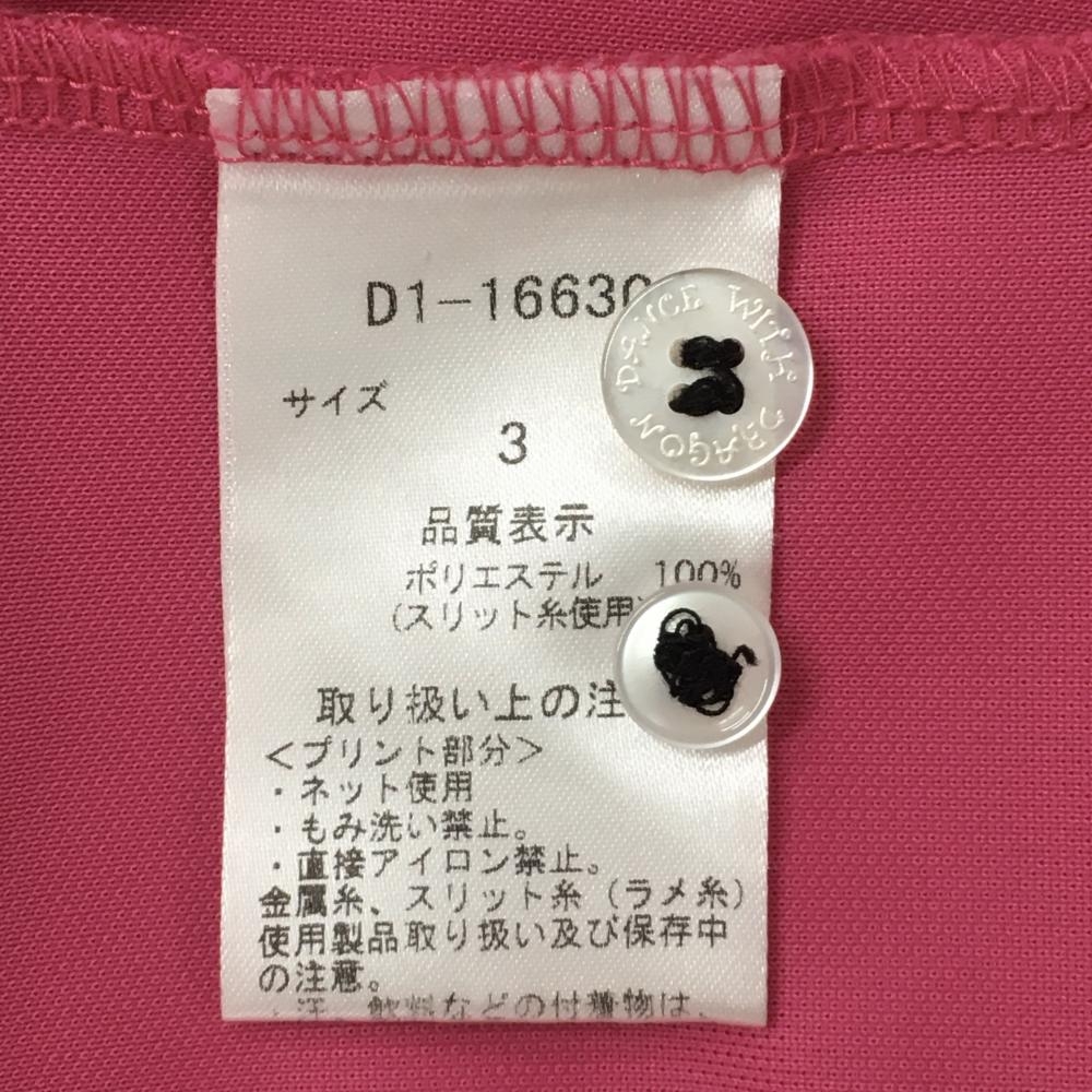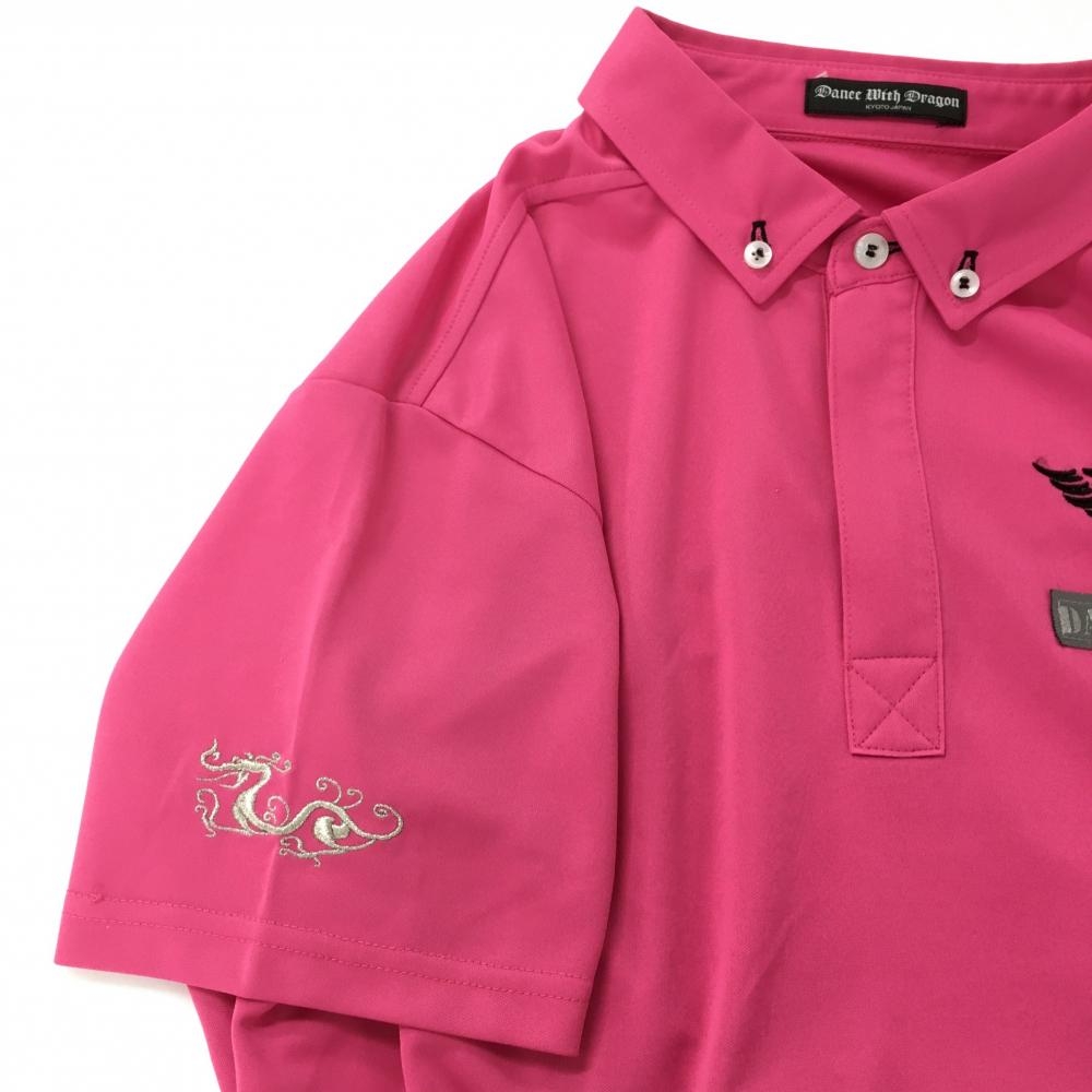 【美品】ダンスウィズドラゴン 半袖ポロシャツ ピンク スカル刺しゅう メンズ 3(L) ゴルフウェア Dance With Dragon