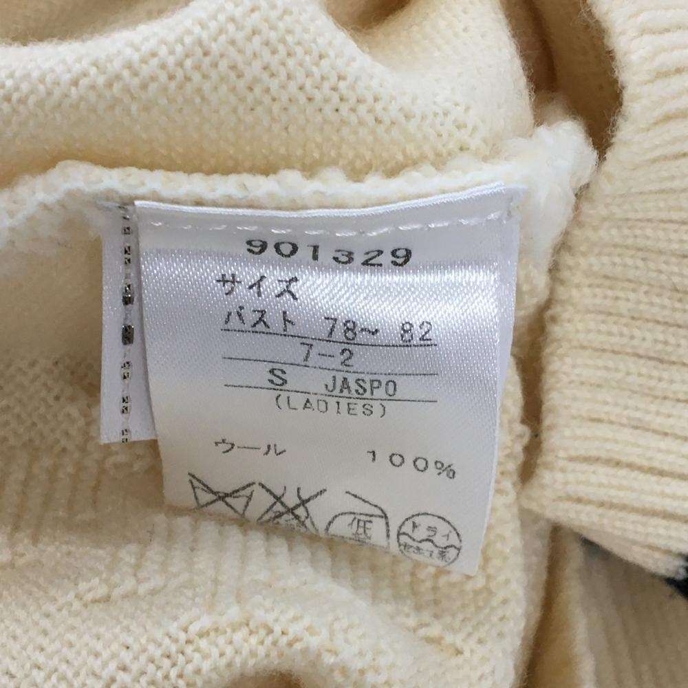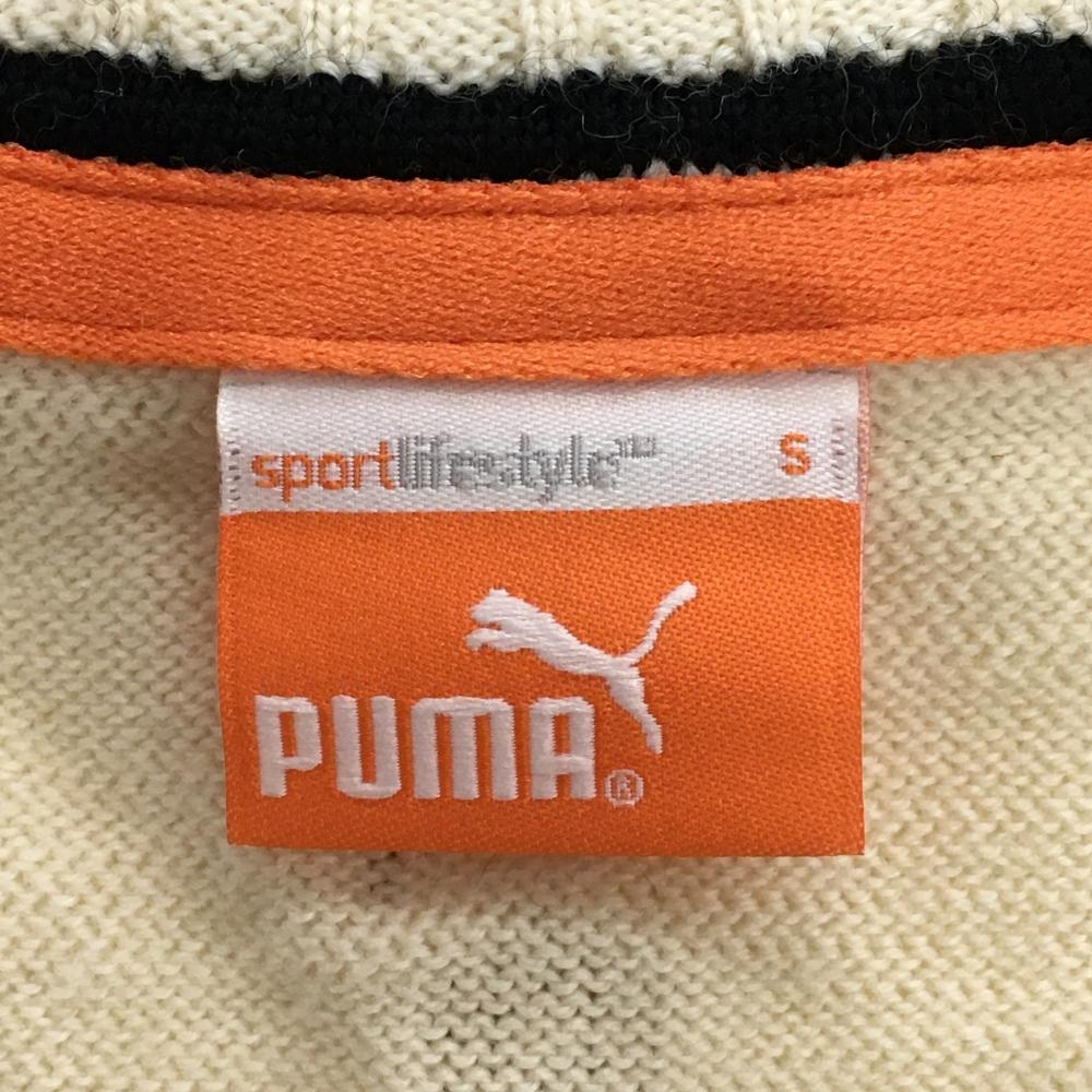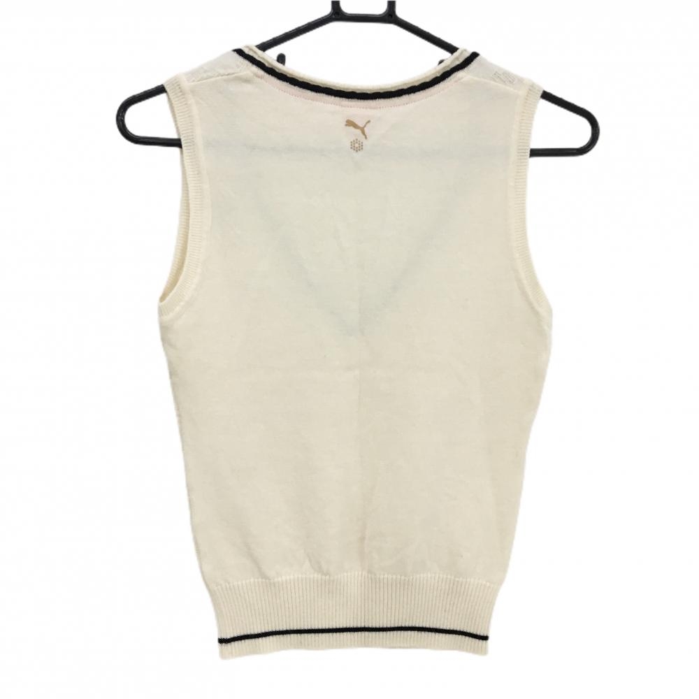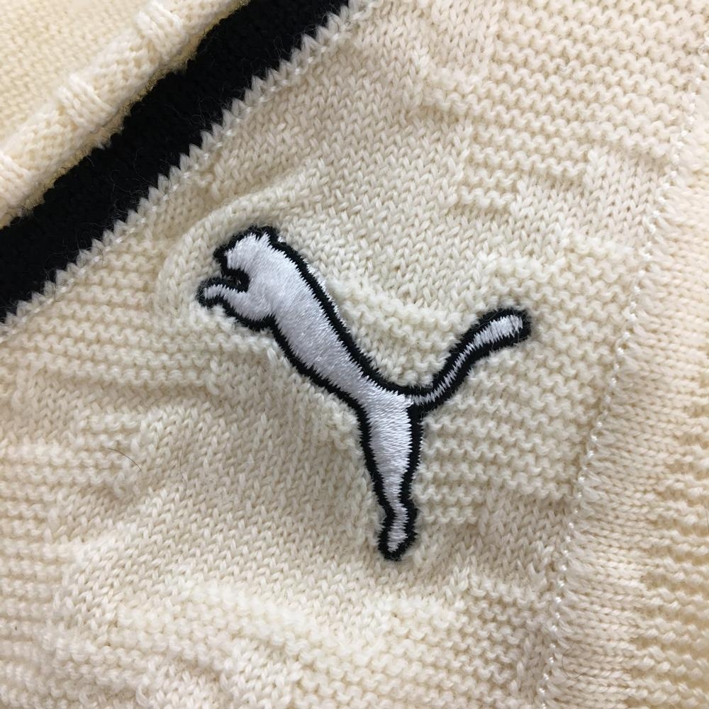 【美品】プーマ ニットベスト アイボリー×黒 前面総柄編み ウール100% レディース S ゴルフウェア PUMA