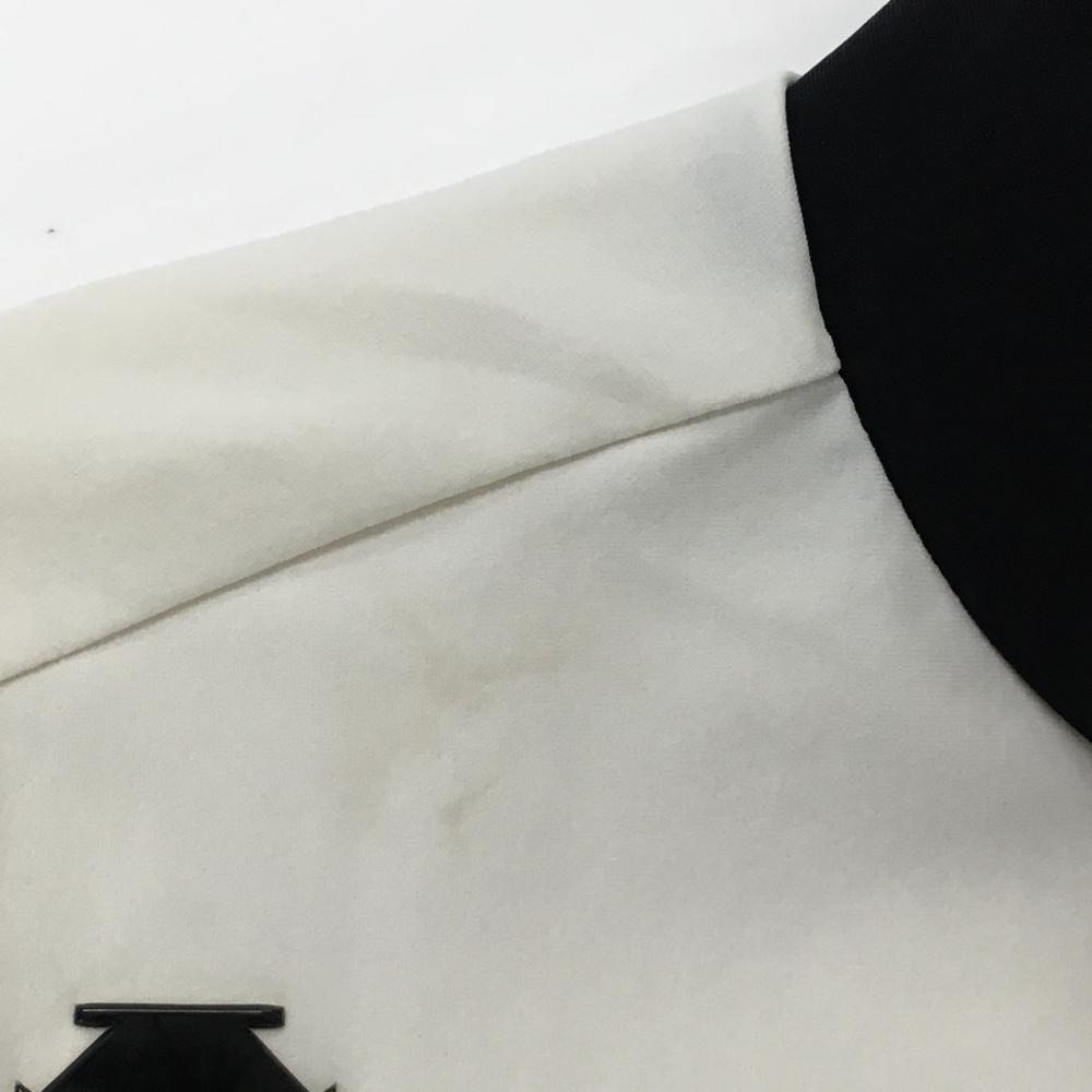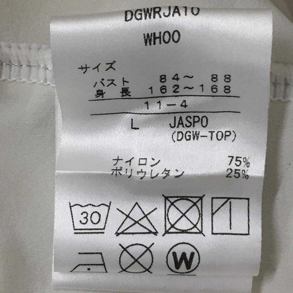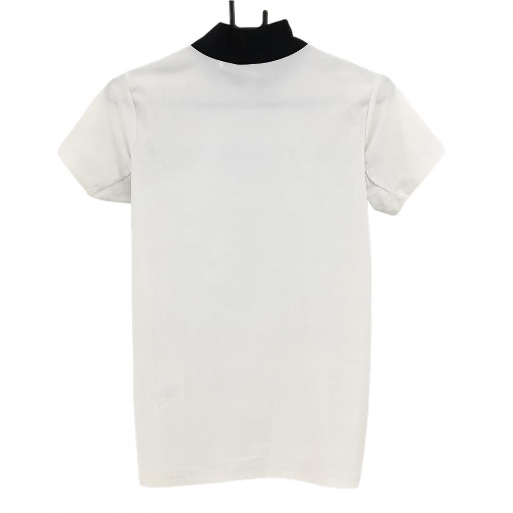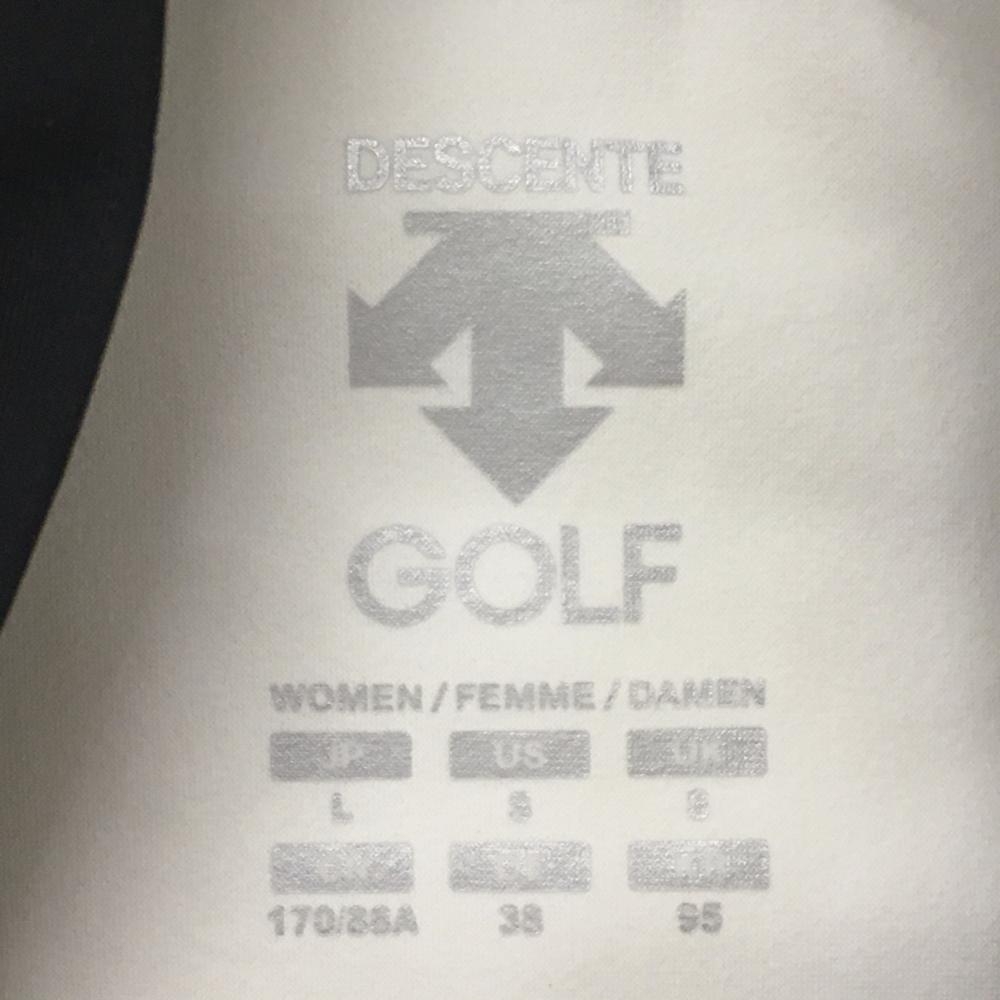【美品】デサントゴルフ 半袖ハイネックシャツ 白×黒 ナイロン混 フロントロゴ 中田英寿 レディース L ゴルフウェア DESCENTE