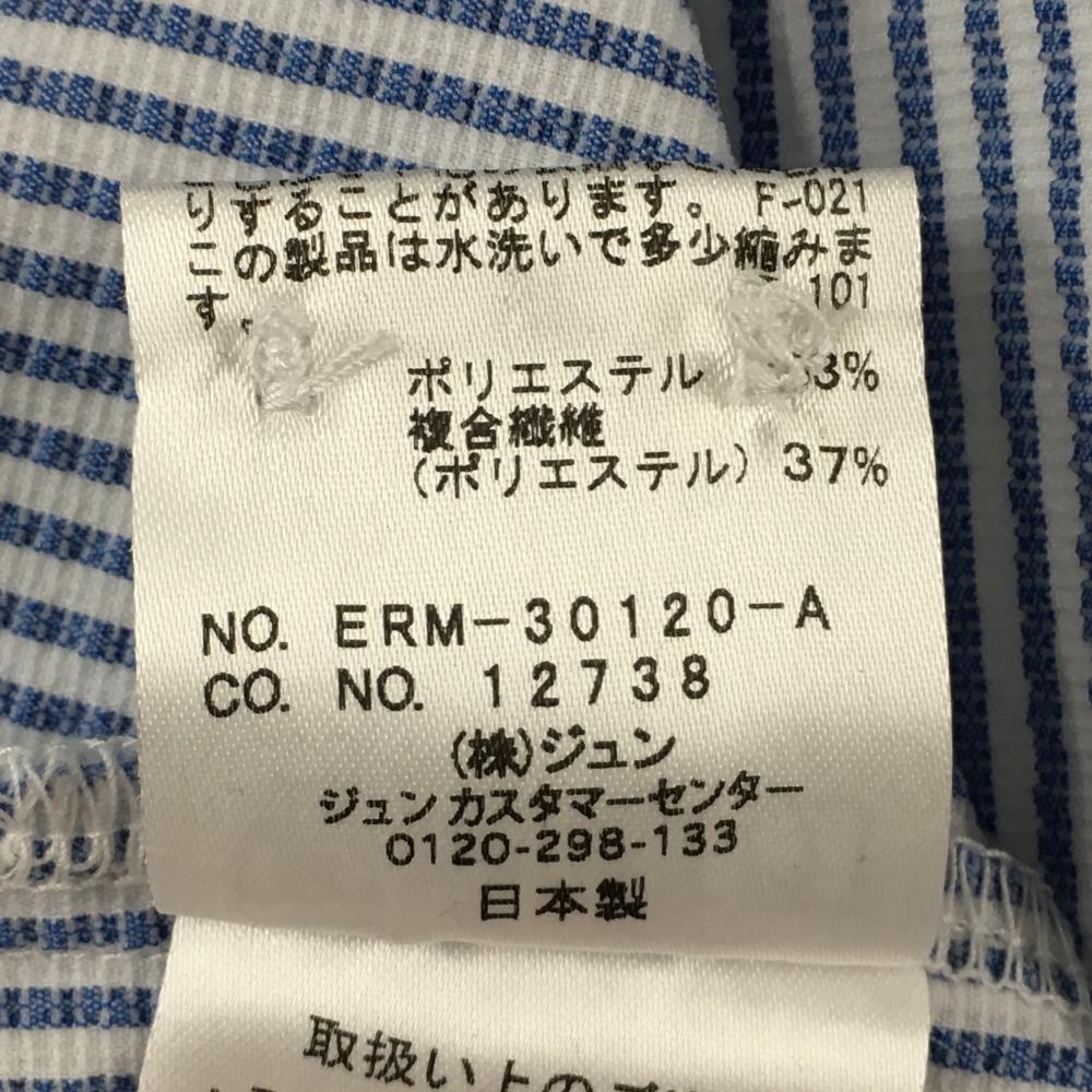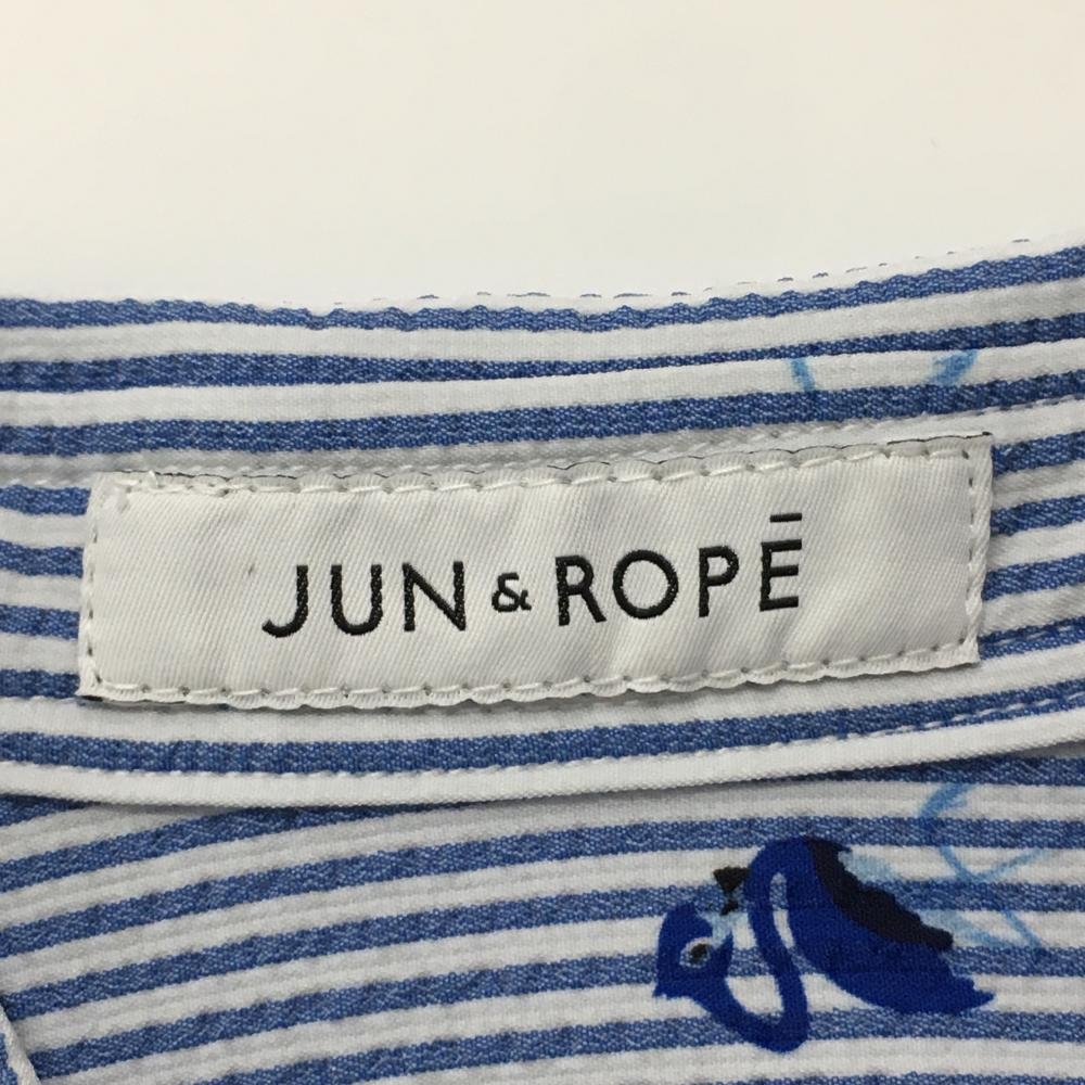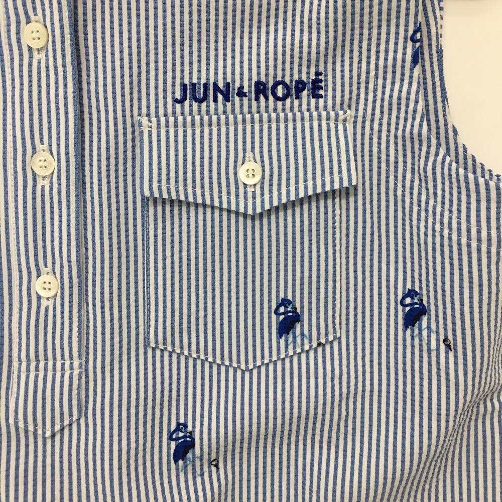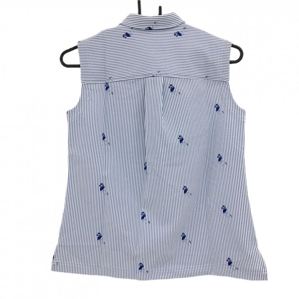 【超美品】ジュンアンドロペ ノースリーブポロシャツ 白×ブルー ストライプ フラミンゴ柄 レディース M ゴルフウェア JUN&ROPE