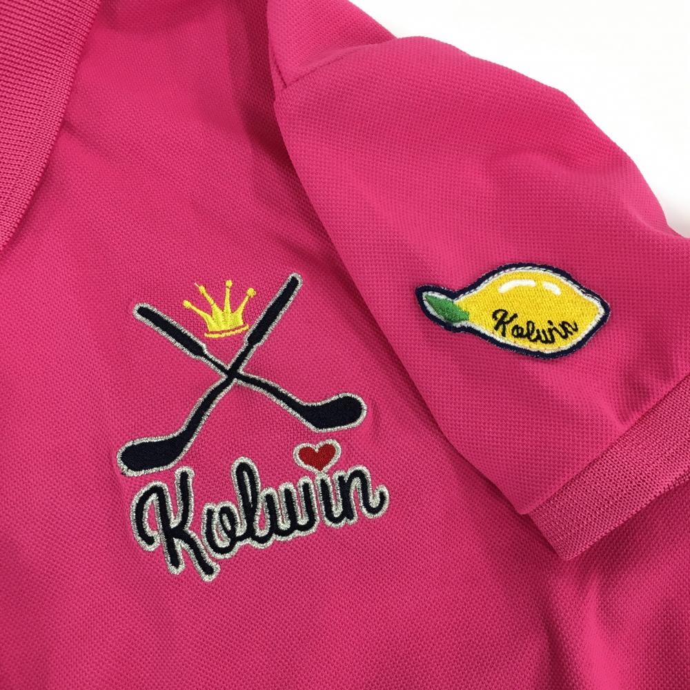 【超美品】コルウィン 半袖ポロシャツ ピンク 袖レモンワッペン レディース L ゴルフウェア Kolwin