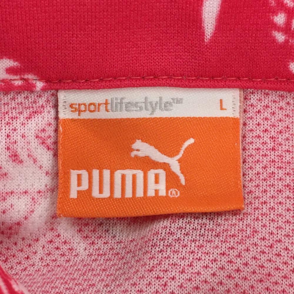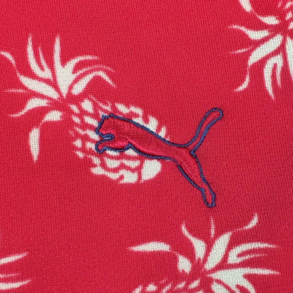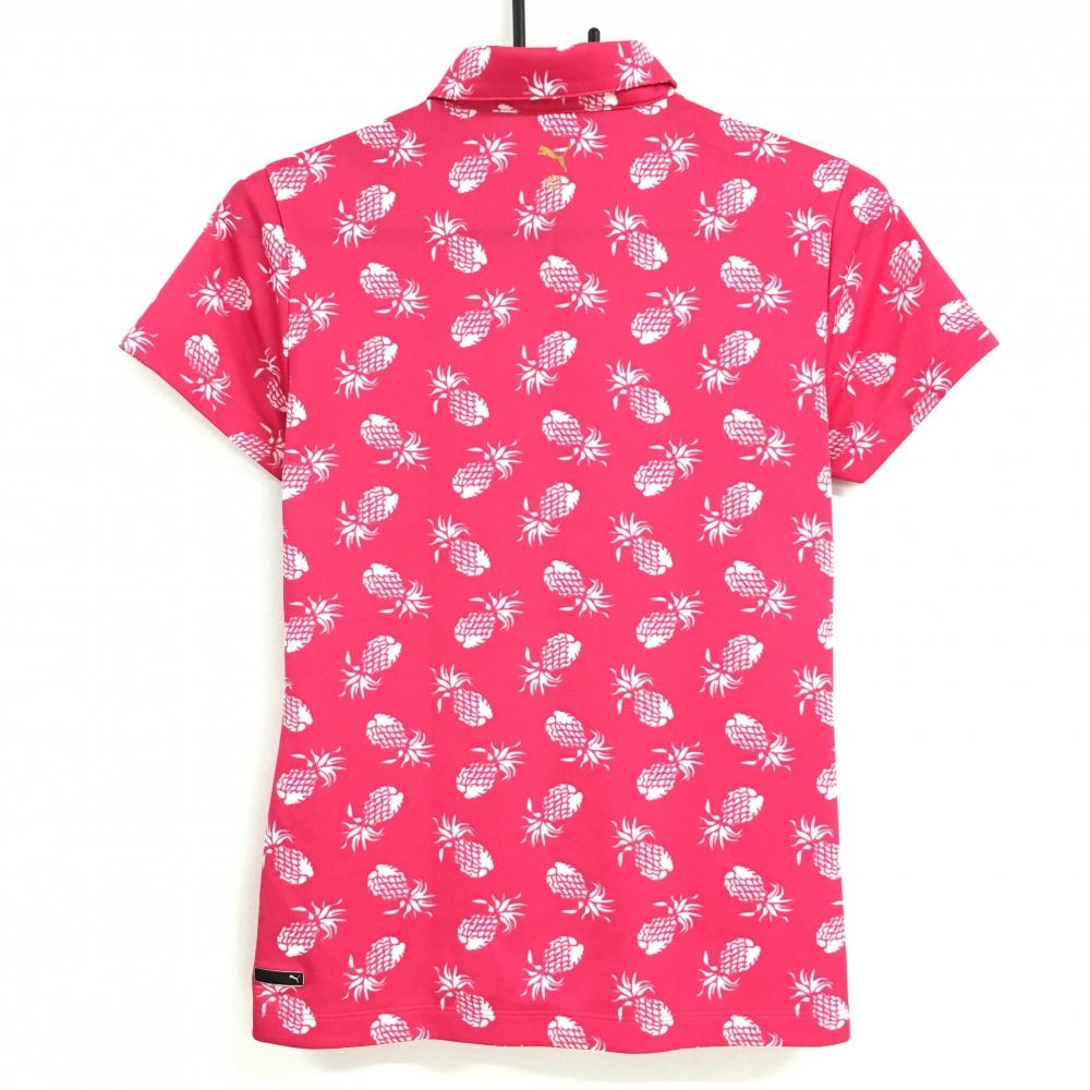 【美品】プーマ 半袖ポロシャツ ピンク×白 パイナップル柄 レディース L ゴルフウェア PUMA