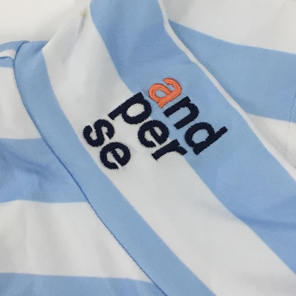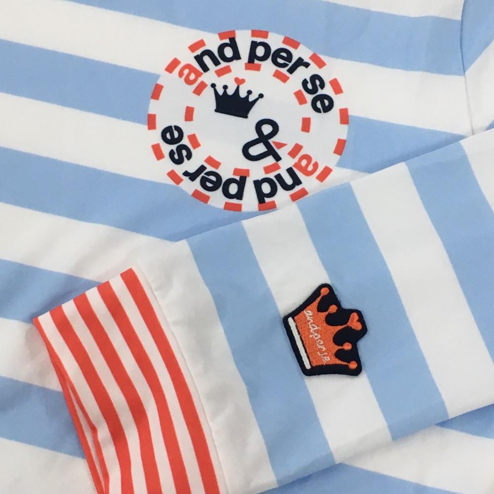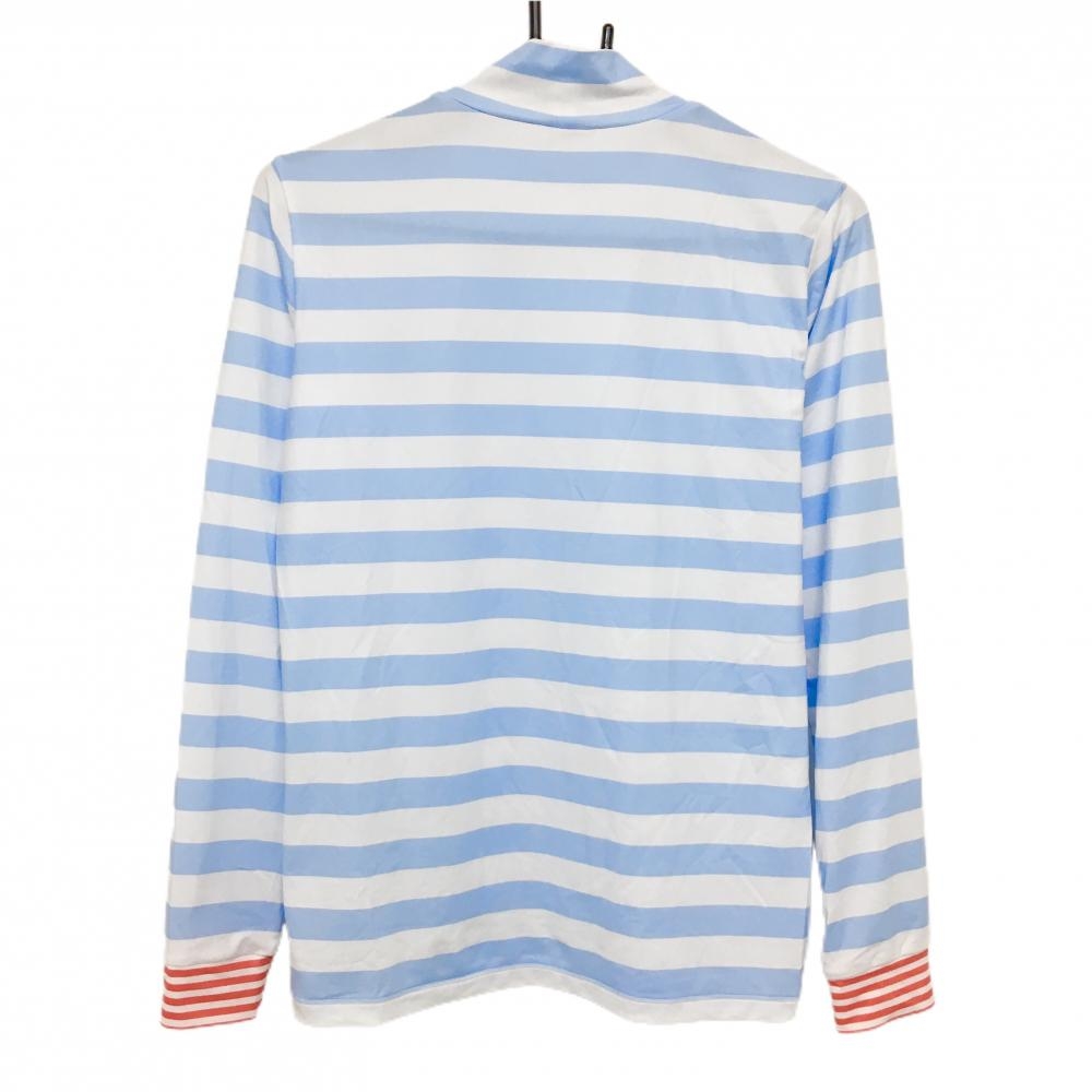 【新品】アンパスィ 長袖ハイネックシャツ 白×ライトブルー ボーダー 吸水速乾 レディース L ゴルフウェア and per se
